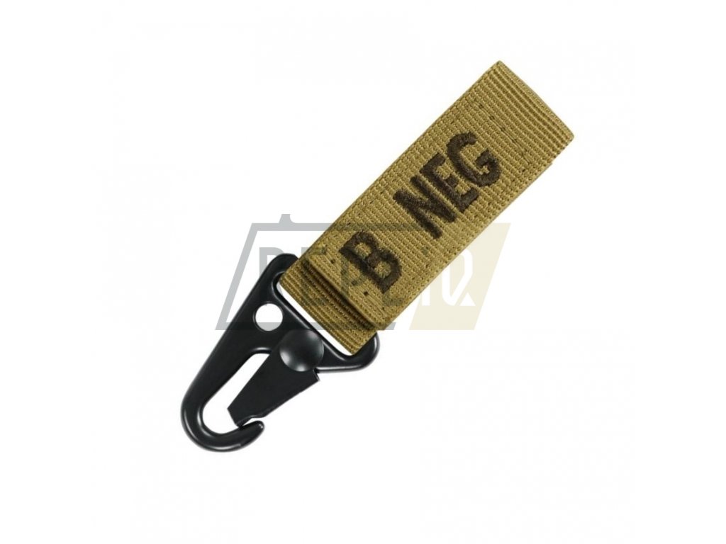 Přívěšek na klíče s označením krevní skupiny a RH faktoru nositele. Lze nosit na opasku, PALS, klíčích či spoustě jiných věcí. Připevnění pomocí kovové "krokodýlové" spony či provlečením. Šířka průvleku 5 cm.
