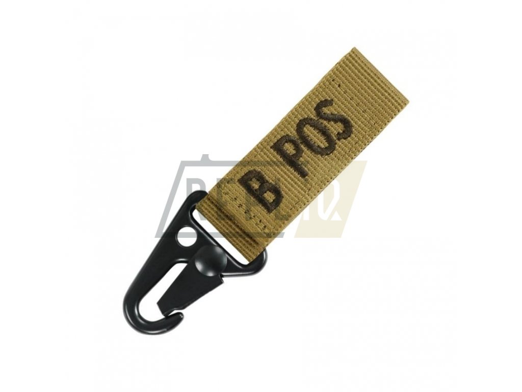 Přívěšek na klíče s označením krevní skupiny a RH faktoru nositele. Lze nosit na opasku, PALS, klíčích či spoustě jiných věcí. Připevnění pomocí kovové "krokodýlové" spony či provlečením. Šířka průvleku 5 cm.