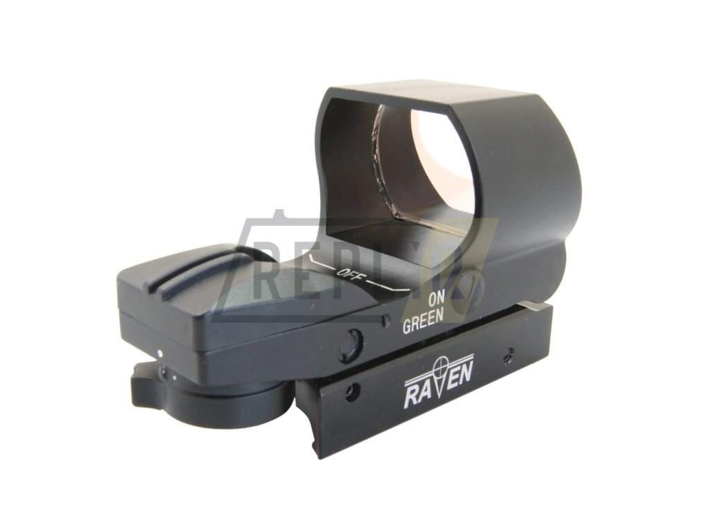Kolimátor Raven Navy PointSight Red/Green jako jeden z mála nabízí čtyři různé zaměřovací body, mezi kterými si můžete přepínat. Navíc nabízí dvojbarevné podsvícení v červené a zelené barvě. Napájení je pomocí 3 baterií typu LR44.