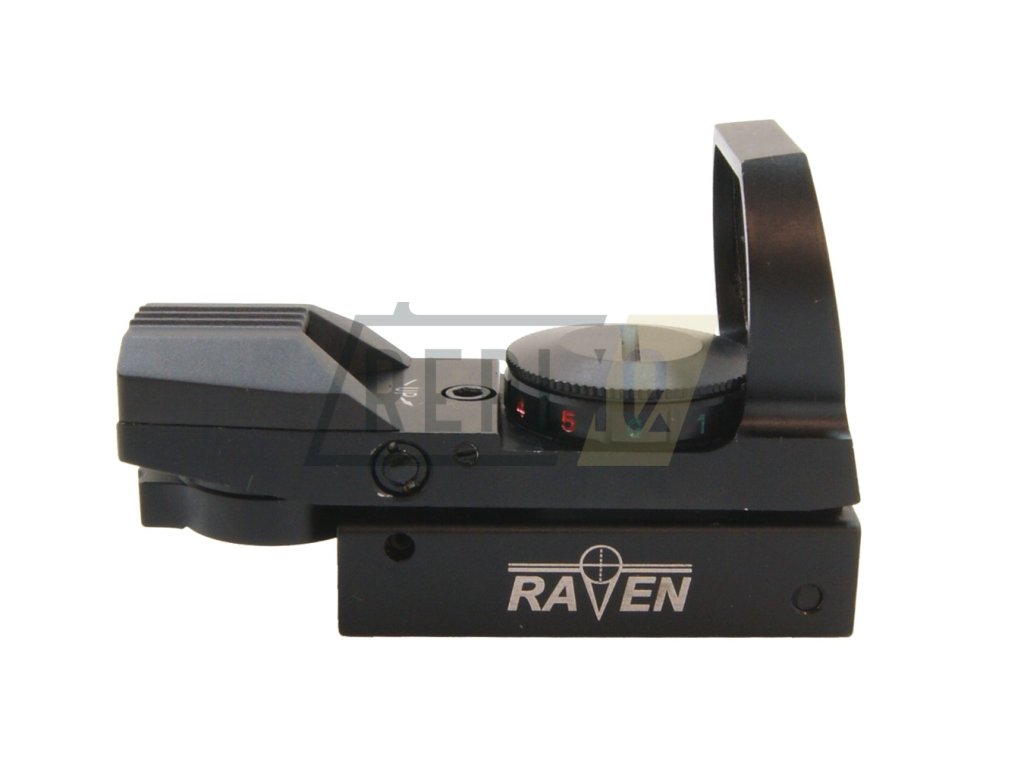 Kolimátor Raven Open PointSight Red/Green jako jeden z mála nabízí čtyři různé zaměřovací body, mezi kterými si můžete přepínat. Navíc nabízí dvojbarevné podsvícení v červené a zelené barvě. Napájení je pomocí ploché baterie typu CR2032.