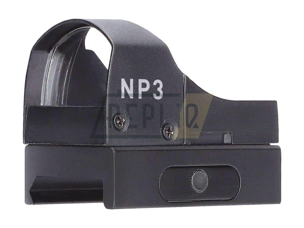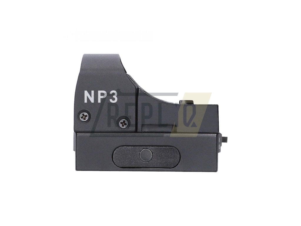 Spodní část kolimátoru Umarex Nano Point 3 je přizpůsobena pro montážní lišty weawer 22 mm. K uchycení na liště slouží montážní šroub umístěný na pravé straně.