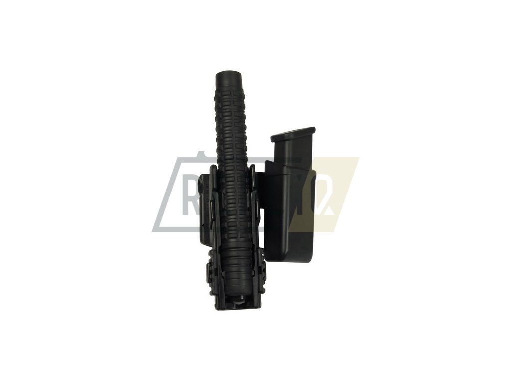 Konstantní poloha obušku a zásobníku zlepšuje orientaci na opasku při volbě vhodného prostředku. Obě pouzdra se vůči opasku otáčejí společně a jejich vzájemná poloha se přitom nemění.