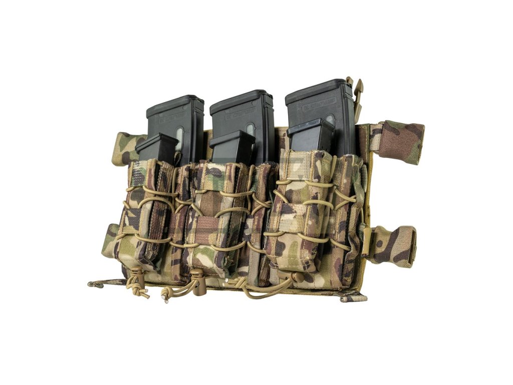 VX MAG RIG je platforma plně kompatibilní se systémem VX od oblíbené značky VIPER TACTICAL. Platforma pojme celkem tři dlouhé puškové zásobníky a tři zásobníky pistolové. Co se týká připojení k systému, máte dvě možnosti. První možností je využití zadního VELCRO panelu, druhou možností jsou FASTEX přezky určené přímo pro systém VX. Zásobníky jsou v platformě fixovány elastickou gumičkou.