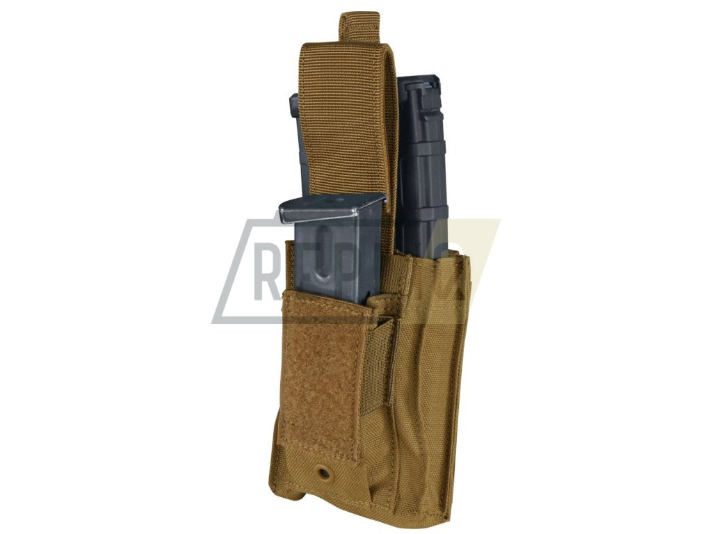 Kvalitně provedená sumka určená pro jeden puškový zásobník typu AR/AK a jeden pistolový zásobník. Puškový zásobník se v sumce fixuje pomocí elastické šňůry, pistolový je fixován nastavitelnou chlopní se suchým zipem. Zadní strana sumky je MOLLE/PALS kompatibilní, je tedy snadné ji připojit k nosiči plátů či chest rigu.