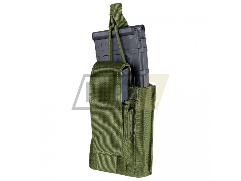 Kvalitně provedená sumka určená pro jeden puškový zásobník typu AR/AK a jeden pistolový zásobník. Puškový zásobník se v sumce fixuje pomocí elastické šňůry, pistolový je fixován nastavitelnou chlopní se suchým zipem. Zadní strana sumky je MOLLE/PALS kompatibilní, je tedy snadné ji připojit k nosiči plátů či chest rigu.