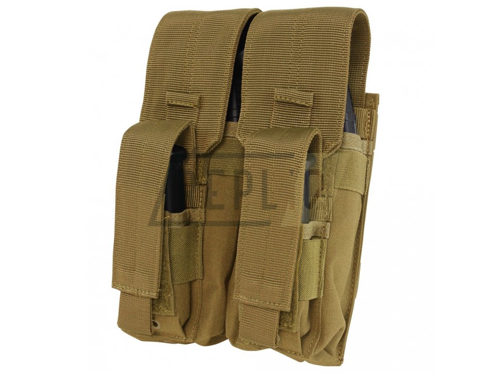 Pouzdro kompatibilní s MOLLE systémem na 2 AK zásobníky a 2 pistolové zásobníky. Uzavíratelné na suchý zip.