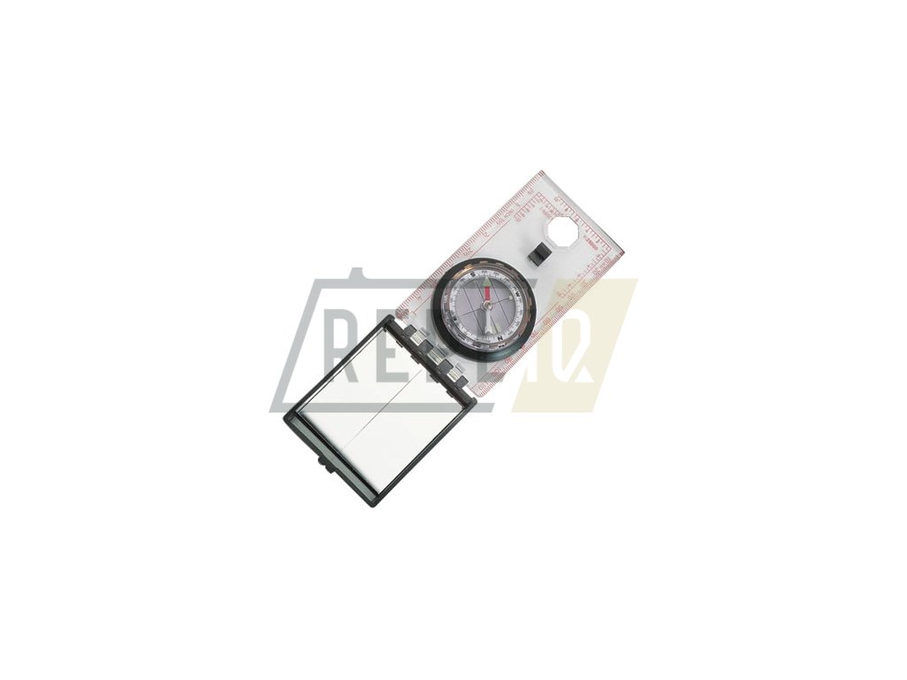 Plastová buzola s kapalinovou výplní. Rozměr 11 x 6 x 1,5 cm, včetně měřítek a lupy.