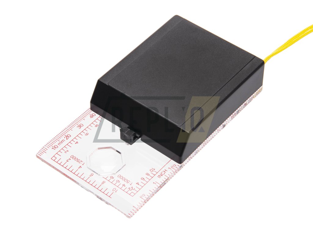 Skládá se z kompasu, sklopného zrcátka a průhledného pravítka s lupou. Samozřejmě nechybí ani šňůrka pro případné zavěšení, která také eliminuje riziko ztráty buzoly v obtížném terénu. Díky průhlednému polymeru a červeným ryskám je práce s mapou opravdu hračka.