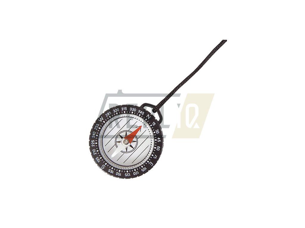Jednoduchý kapalinový kompas na šňůrce s 360 stupňovým rozpětím. Kompas má průměr 5 cm.