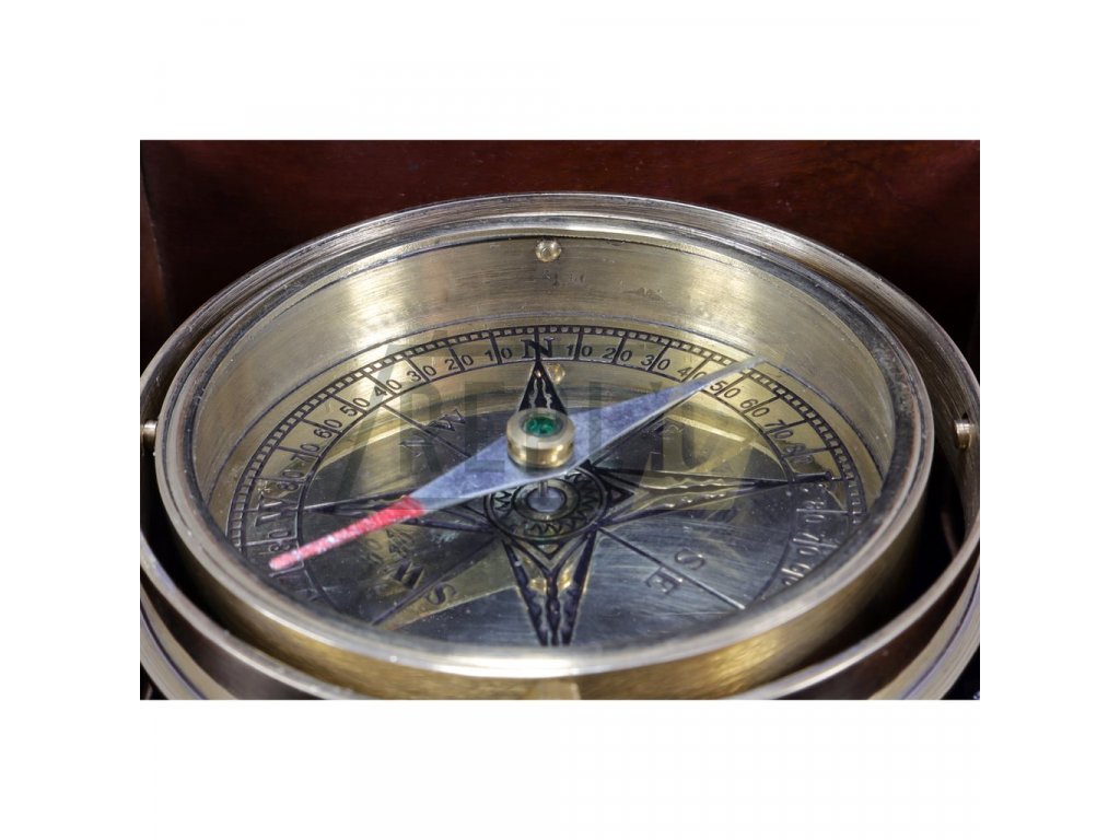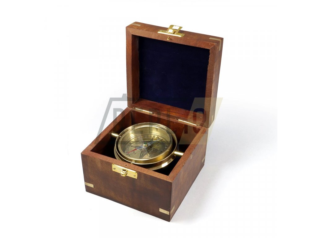 Kompas VELKÝ MOSAZNÝ v dřevěné krabičce