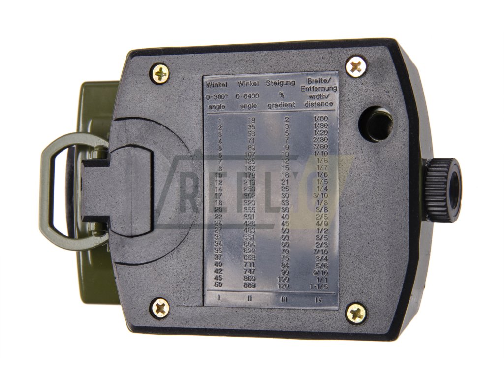 Po stranách kompasu se nachází centimetrové a palcové měřítko. Praktickým doplňkem je i vestavěná vodováha. Na spodní straně kompasu se nachází tabulka pro přepočet úhlů, odchylek a vzdáleností. Kompas lze pohodlně zavěsit na šňůře kolem krku nebo ho nosit v opaskovém pouzdře, obojí je součástí balení.
