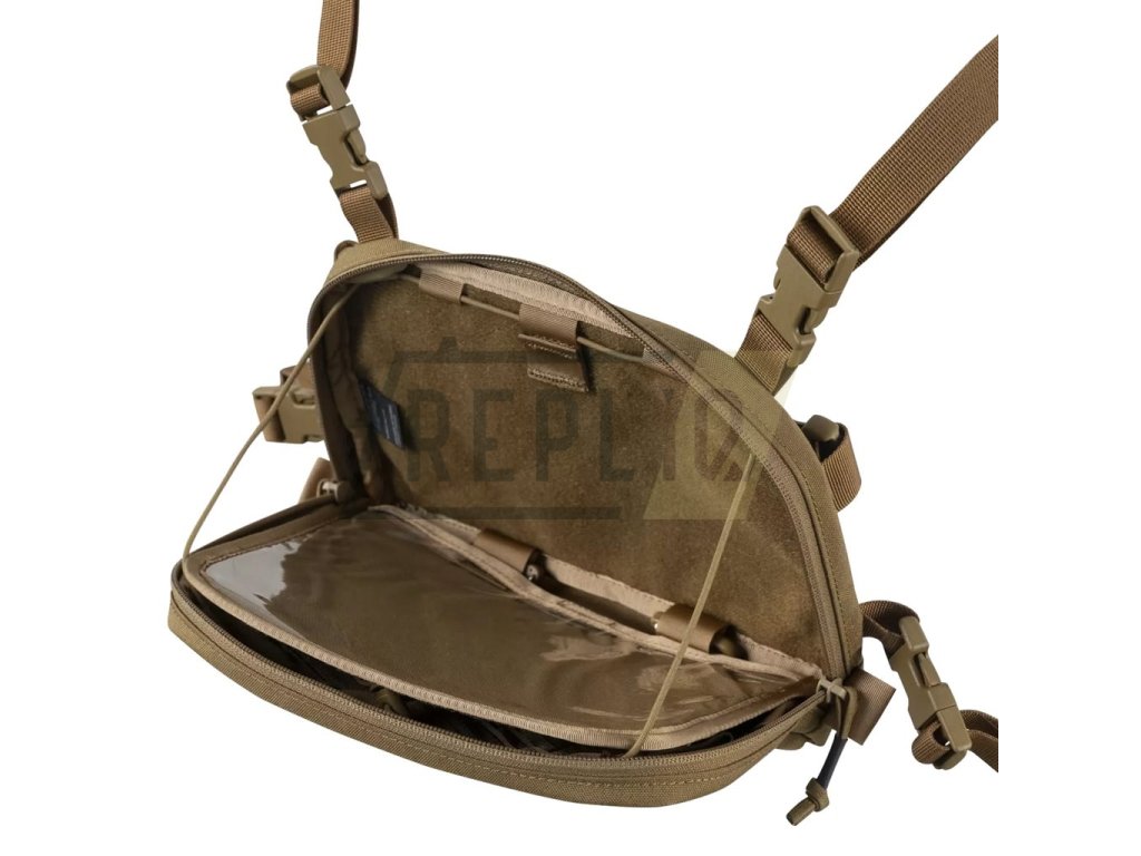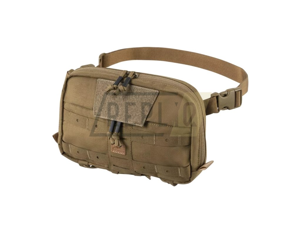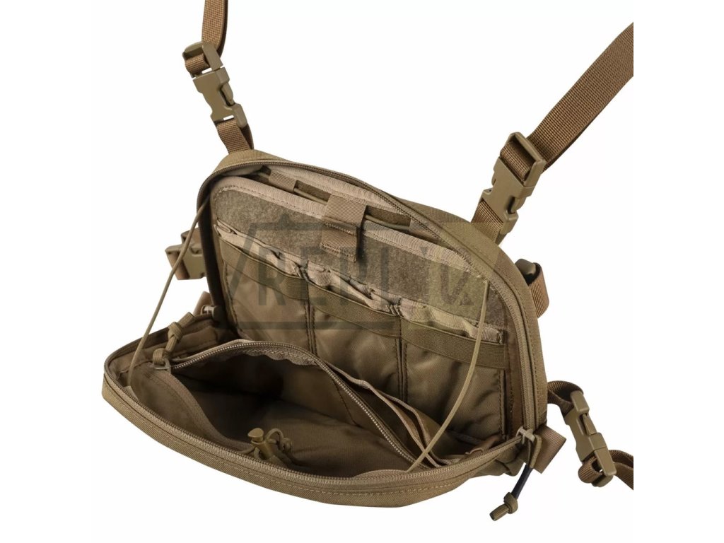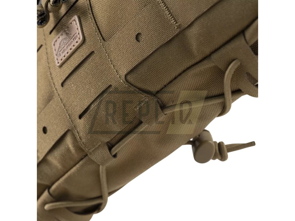 Nosné řemení tvaru H je délkově stavitelné, připínané pomocí plastových přezek a v zadní části jeho konstrukci tvoří jemná 3D síťovina. Po odejmutí řemení je možné využít dvojice přezek pro připevnění nastavitelného bederního popruhu a kapsu pak nosit kolem pasu jako ledvinku. Na čelní části kapsy naleznete rozměrný pruh suchého zipu pro personalizaci pomocí VELCRO nášivek, modulární vazbu standardu MOLLE/PALS pro připevnění dodatečného vybavení a plochou kapsu uzavíranou pomocí dvoucestného zipu. Dno je opatřeno elastickým šněrováním s možností stáhnutí pomocí plastové brzdičky.