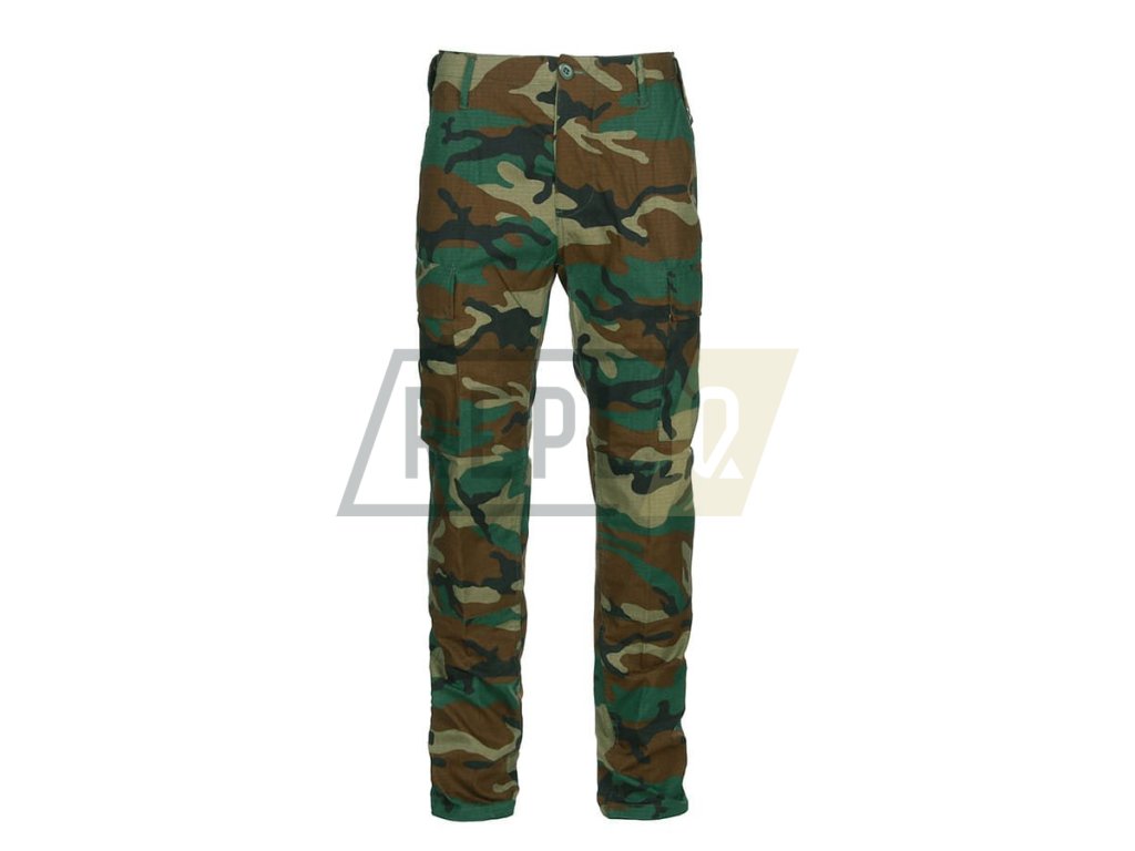 Třídílný BDU komplet tvořený blůzou, kalhotami a čepicí. Celý set je vyrobený z odolného rip-stop materiálu o poměru 65% bavlna, 35% polyester. Kalhoty s extra zesíleným sedem se zapínají pomocí knoflíků a disponují celkem šesti kapsami. Dvě kapsy na ruce naleznete klasicky v pase, dvě rozměrné cargo kapsy jsou umístěné na stehnech a hýždě jsou opatřeny dvojicí kapes na peněženku či podobně rozměrnou výbavu. Blůza disponuje čtyřmi předními kapsami, nastavitelnými manžetami rukávů a ozdobnými epoletami na ramenou.
