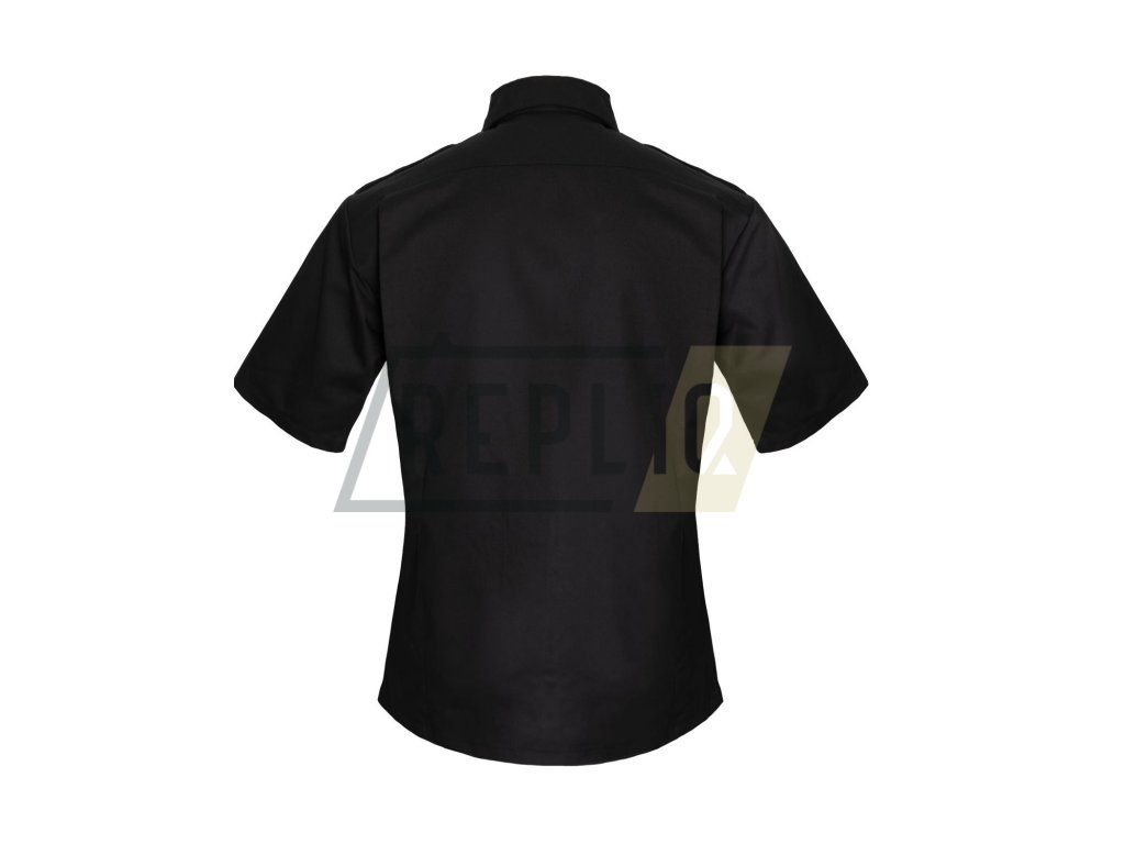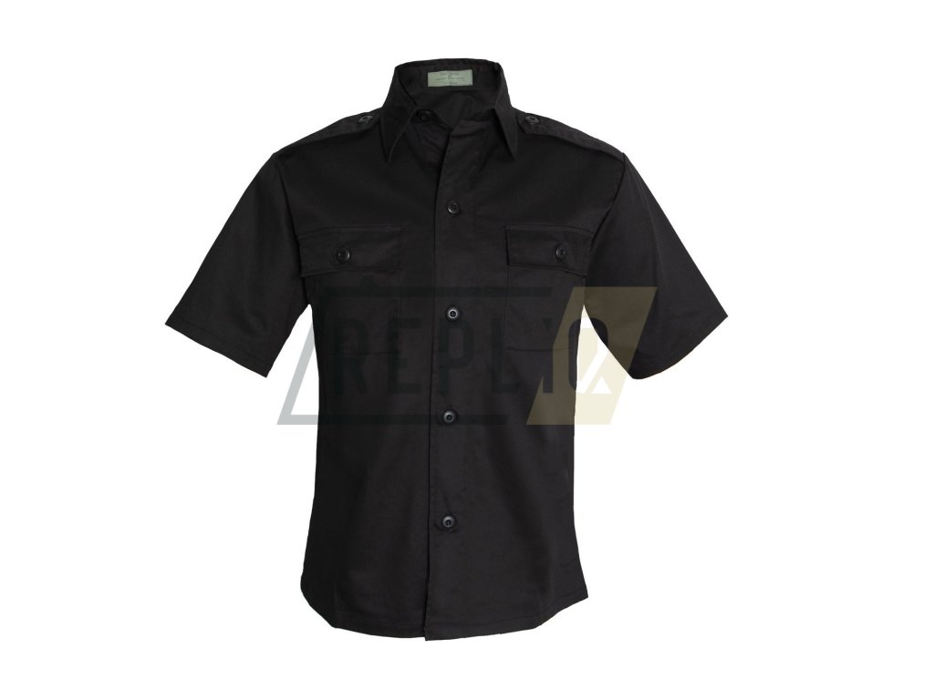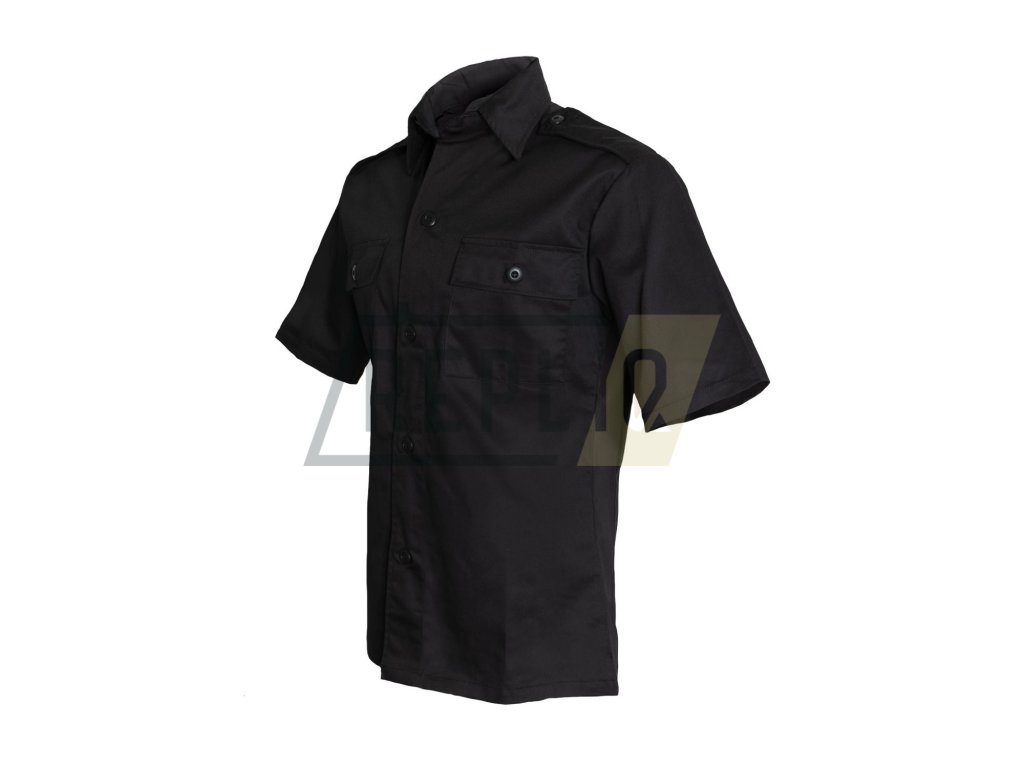Služební černá košile s krátkým rukávem, dvě náprsní kapsy, nárameníky. Materiál: 65 % polyester, 35 % bavlna.