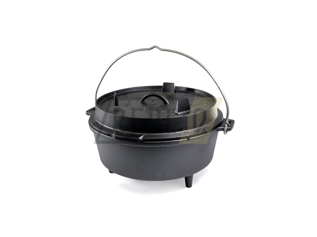 Univerzální hrnec, který je známý hlavně pod názvem Holanská trouba či Dutch Oven. Na jeho výrobu byla použita kvalitní litina skvěle rozvádějící teplo. Díky této vlastnosti se jídlo v kotlíku rovnoměrně ohřívá, což je opravdu podstatná výhoda oproti hrncům z jiných materiálů jako je například nerez. Litina navíc skvěle teplo i udržuje, připravený pokrm tak zůstane podstatně déle teplý. Kotlík je vhodný pro všechny způsoby přípravy jídla, bez problémů lze použít nad ohněm či jej můžete vložit přímo do ohniště a zasypat žhavým popelem. Poklička kotlíku lze využít k servírovaní či jako improvizovaná pánev. Díky malému otvoru mezi hrncem a pokličkou lze dovnitř snadno zasunout teploměr pro kontrolu teploty jídla.