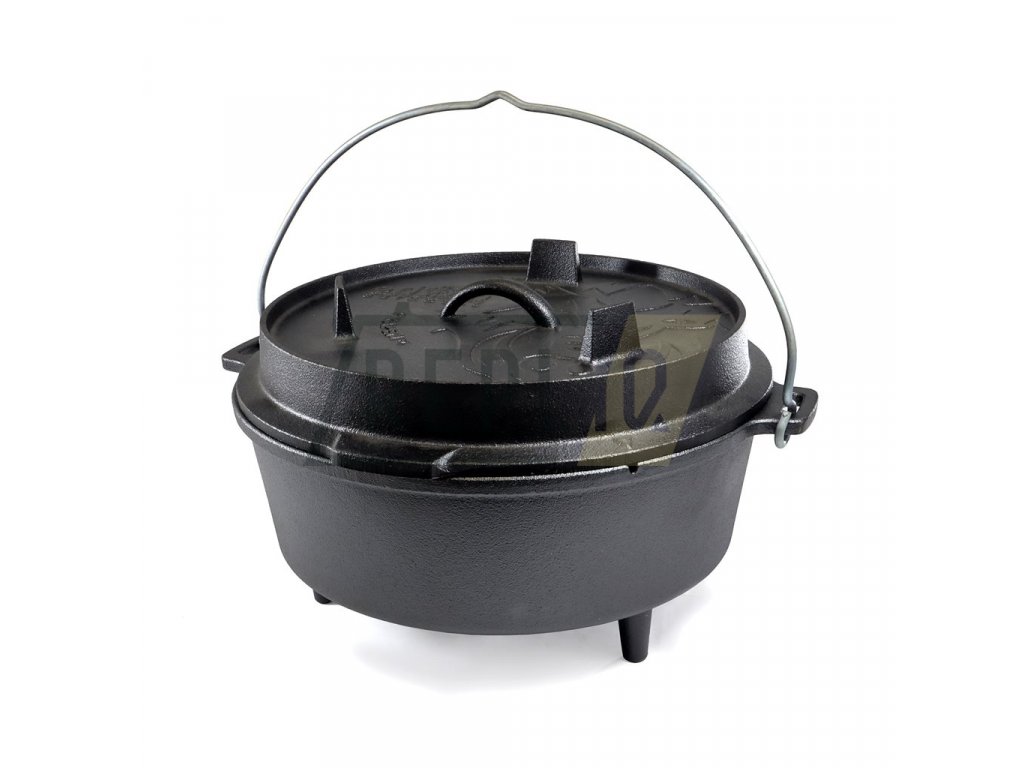 Univerzální hrnec, který je známý hlavně pod názvem Holanská trouba či Dutch Oven. Na jeho výrobu byla použita kvalitní litina skvěle rozvádějící teplo. Díky této vlastnosti se jídlo v kotlíku rovnoměrně ohřívá, což je opravdu podstatná výhoda oproti hrncům z jiných materiálů jako je například nerez. Litina navíc skvěle teplo i udržuje, připravený pokrm tak zůstane podstatně déle teplý. Kotlík je vhodný pro všechny způsoby přípravy jídla, bez problémů lze použít nad ohněm či jej můžete vložit přímo do ohniště a zasypat žhavým popelem. Poklička kotlíku lze využít k servírovaní či jako improvizovaná pánev. Díky malému otvoru mezi hrncem a pokličkou lze dovnitř snadno zasunout teploměr pro kontrolu teploty jídla.