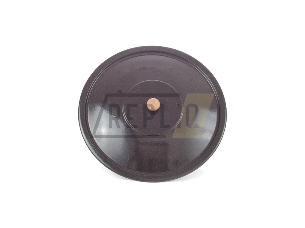 Smaltovaná poklice na kotlík o objemu 22 l. Průměr 44 cm.