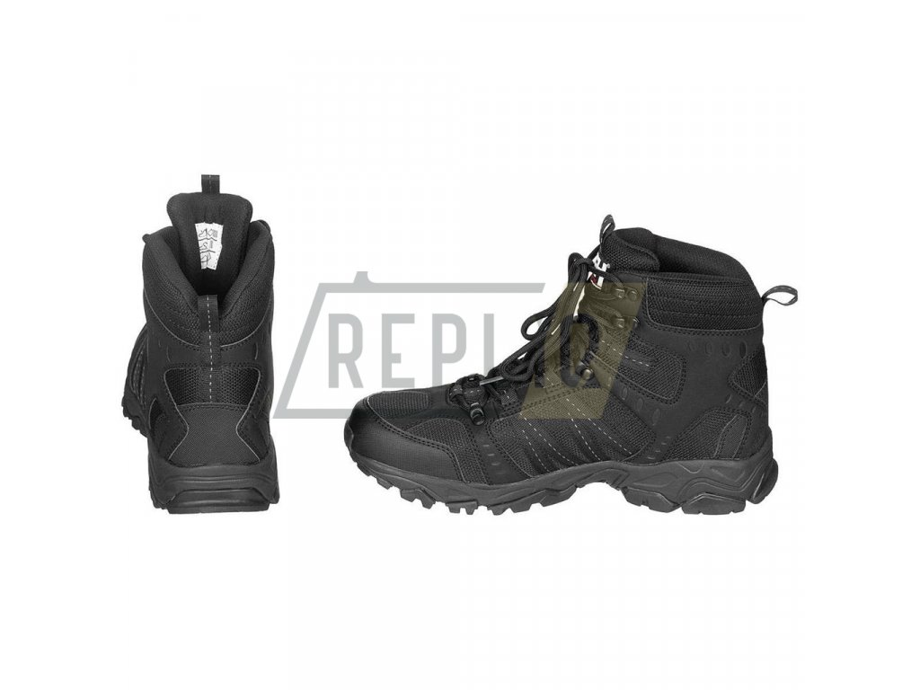 Taktické lehké boty s membránou, které využijete i na svých výletech do přírody. Jsou velmi pohodlné, výrazně vzorovaná podrážka neklouže a vnitřní vrstva je navržena tak, aby v případě navlhnutí rychle schla. Pro větší komfort mají boty polstrovaný jazyk a vrchní část nad kotníkem. Tkaničky vedou kovová a látková oka, poslední 2 jsou kovové háčky - tkaničky se tak lépe utahují.