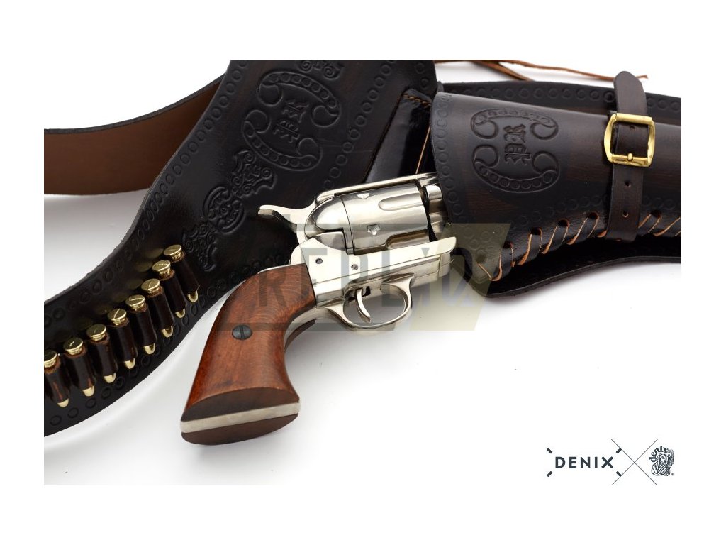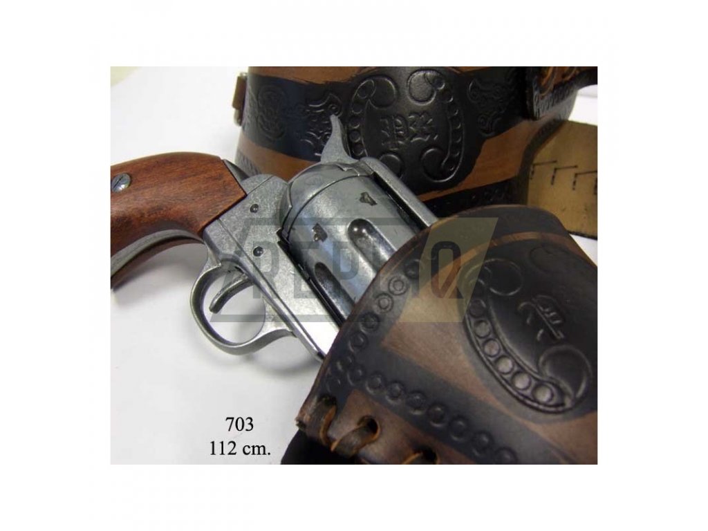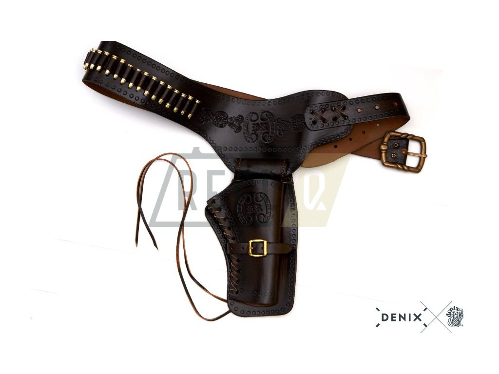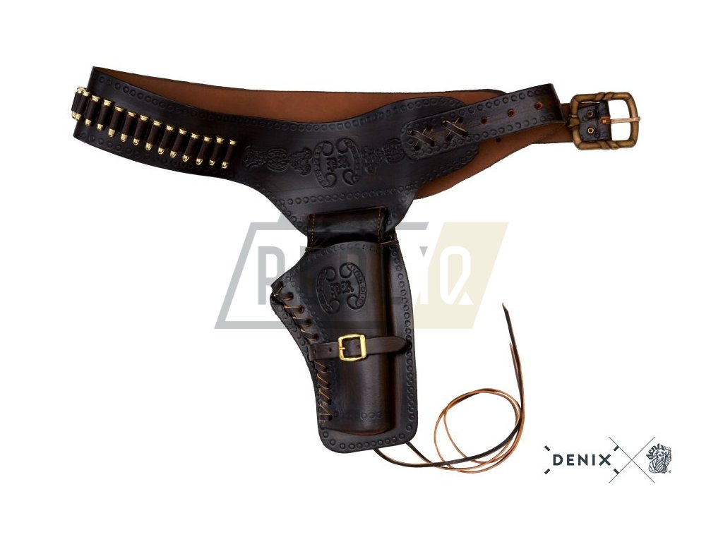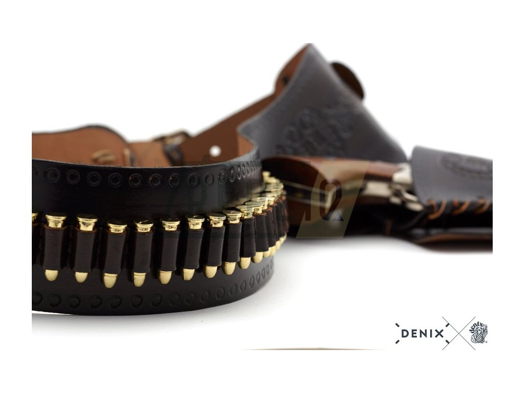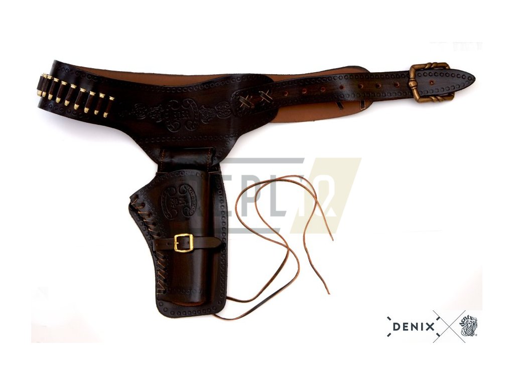 Opasek s pouzdrem na jednu pistoli. Výborný i jako součást maškarního kostýmu ve stylu western, cowboy nebo jako dekorace. Nesmí chybět ve sbírce westernového sběratele. Max obvod pasu 117 cm. 24 ks nabojů do Peacemakeru. U nás pod kodem 50.denix.