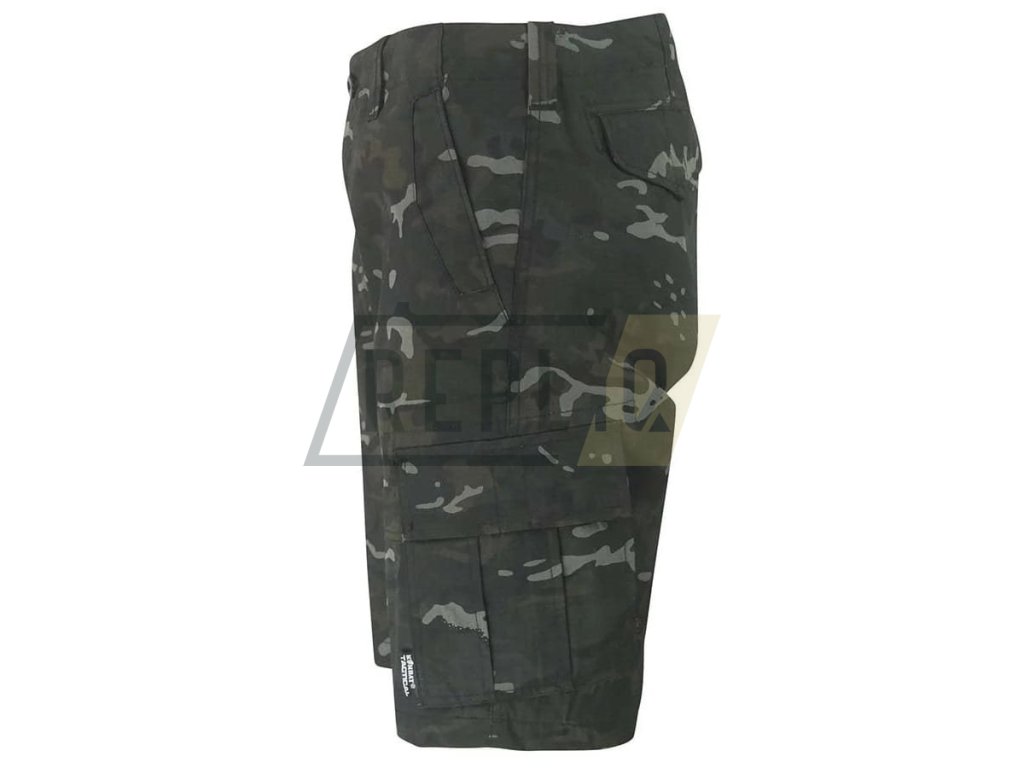 Klasické CARGO kraťasy vyrobené z polybavlny v netrhavé rip-stop úpravě. Zapínání kraťas je řešené pomocí kombinace knoflíku a zipu, v pase naleznete poutka pro opasky do šíře 50 mm. Kapsy na ruce mají šikmé vstupy a jejich okraj je zesílený tak, abyste mohli bez obav z poškození přenášet nože s kapesním klipem. Na stehnech naleznete poměrně rozměrné CARGO kapsy kryté chlopní. Poslední dvojici kapes naleznete na hýždích, ty bez problémů pojmou peněženku či podobně rozměrnou výbavu a jejich krycí chlopeň je jištěna drukem.