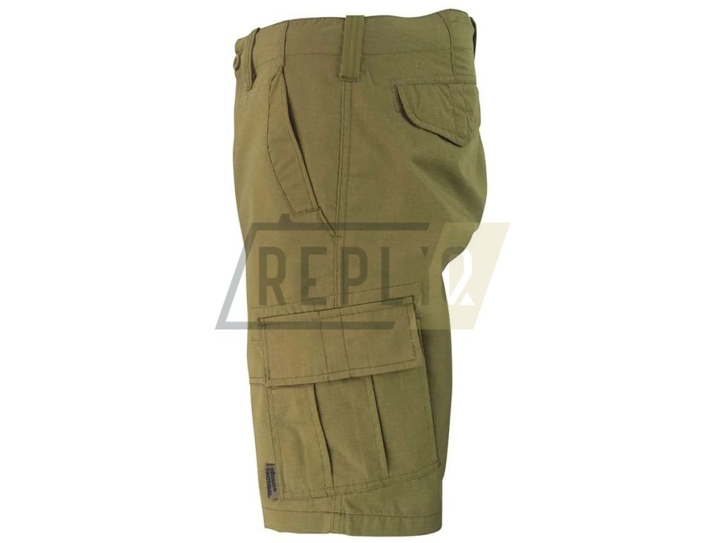Klasické CARGO kraťasy vyrobené z polybavlny v netrhavé rip-stop úpravě. Zapínání kraťas je řešené pomocí kombinace knoflíku a zipu, v pase naleznete poutka pro opasky do šíře 50 mm. Kapsy na ruce mají šikmé vstupy a jejich okraj je zesílený tak, abyste mohli bez obav z poškození přenášet nože s kapesním klipem. Na stehnech naleznete poměrně rozměrné CARGO kapsy kryté chlopní. Poslední dvojici kapes naleznete na hýždích, ty bez problémů pojmou peněženku či podobně rozměrnou výbavu a jejich krycí chlopeň je jištěna drukem.