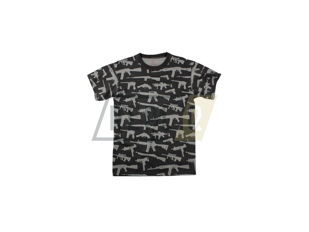 Pohodlné a módní tričko s krátkým rukávem. Stříbrné potisky zbraní na celém tričku.