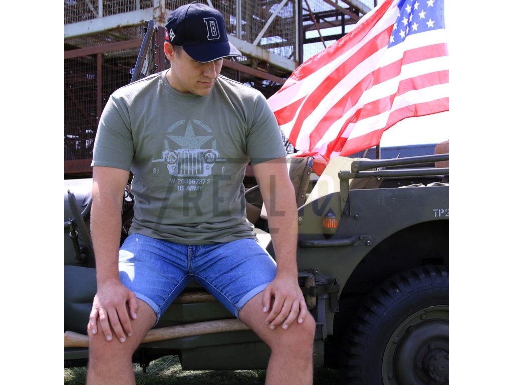 Americký armádní džíp na potisku je nejznámějším vozidlem z druhé světové války a je velmi oblíbeným vozidlem mezi znalci.