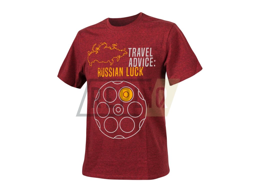 Pohodlné tričko klasického střihu silnější gramáže s motivem známé a nebezpečné hry: Ruské rulety. Jak už je u firmy Helikon-Tex zvykem, je velmi kvalitně provedeno.