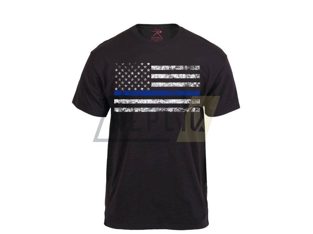 Triko s krátkým rukávem, atletického střihu, s velkou americkou vlajkou a modrým pruhem. Modrý pruh představuje podporu příslušníkům policie. Atletický střih znamená, že je vsazený límec, triko je širší v oblasti hrudníku a rukávy jsou o něco širší a kratší než u běžných triček. V tomto triku obzvlášť dobře vynikne vysportovaná postava.