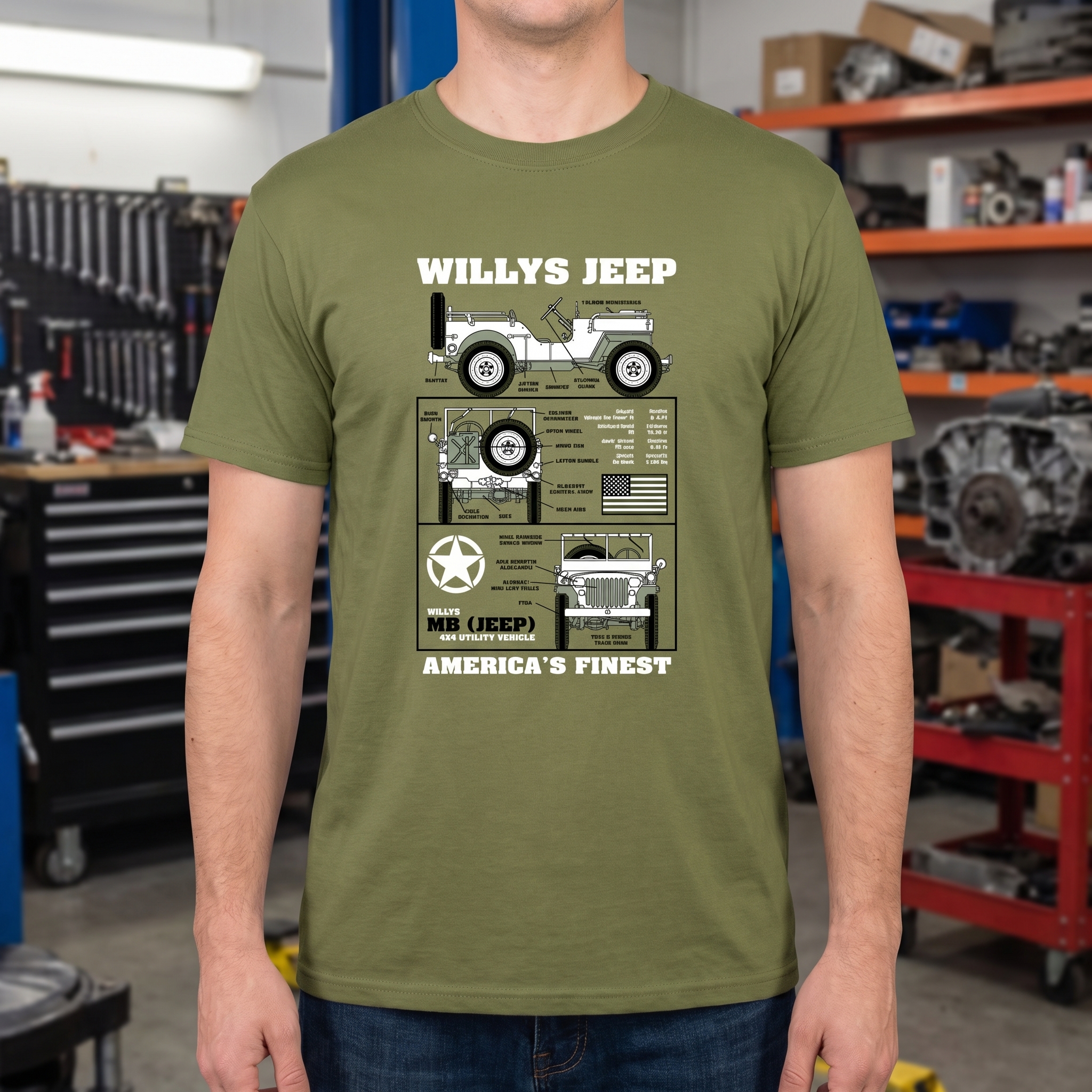 Tričko WILLYS JEEP v zeleném provedení je ideální volbou pro všechny, kteří mají vztah k armádní historii a legendární technice. Motiv ikonického vozu Willys dodává tričku výrazný charakter a zároveň zůstává dobře kombinovatelný s běžným oblečením.