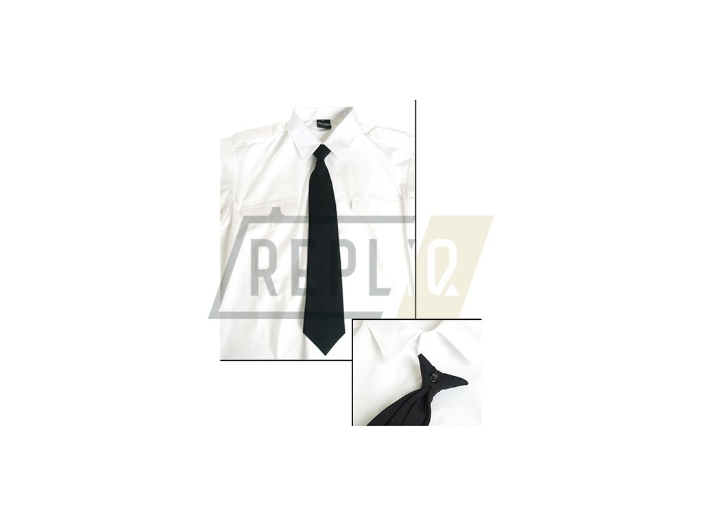 Černá kravata vhodná např. pro pracovníky security, bezpečnostní složky apod.. Upnutí pomocí knoflíku zajistí pohodlné nošení bez škrcení. Materiál 100 % polyester.
