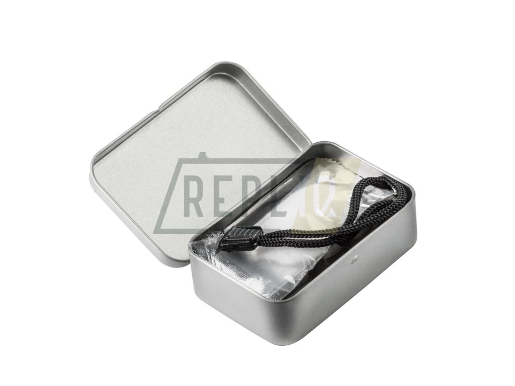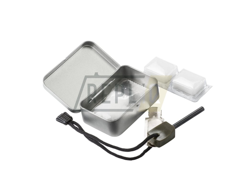 Jednoduchý set určený ke snadnému rozdělání ohně v jakékoli situaci. Celý set je uložen v odolné plechové krabičce, která obsah chrání před poškozením a vlhkostí. Krabička obsahuje ferroceriové křesadlo, dvě podpalovací tablety a balíček vysoce hořlavé bavlněné vaty.