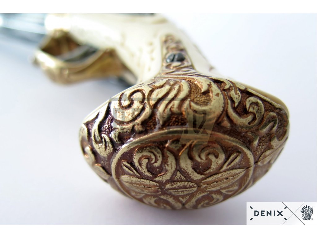 Denix klade velký důraz na autenticitu a detailní zpracování svých replik. Každý výrobek je pečlivě navržen a vyroben tak, aby co nejvěrněji odpovídal originálu. Společnost používá kvalitní materiály, jako jsou slitiny kovů a dřevo, které zaručují dlouhou životnost a odolnost replik. Detailní povrchová úprava, včetně patiny a jemných rytin, přispívá k autentickému vzhledu a dojmu z každé repliky.