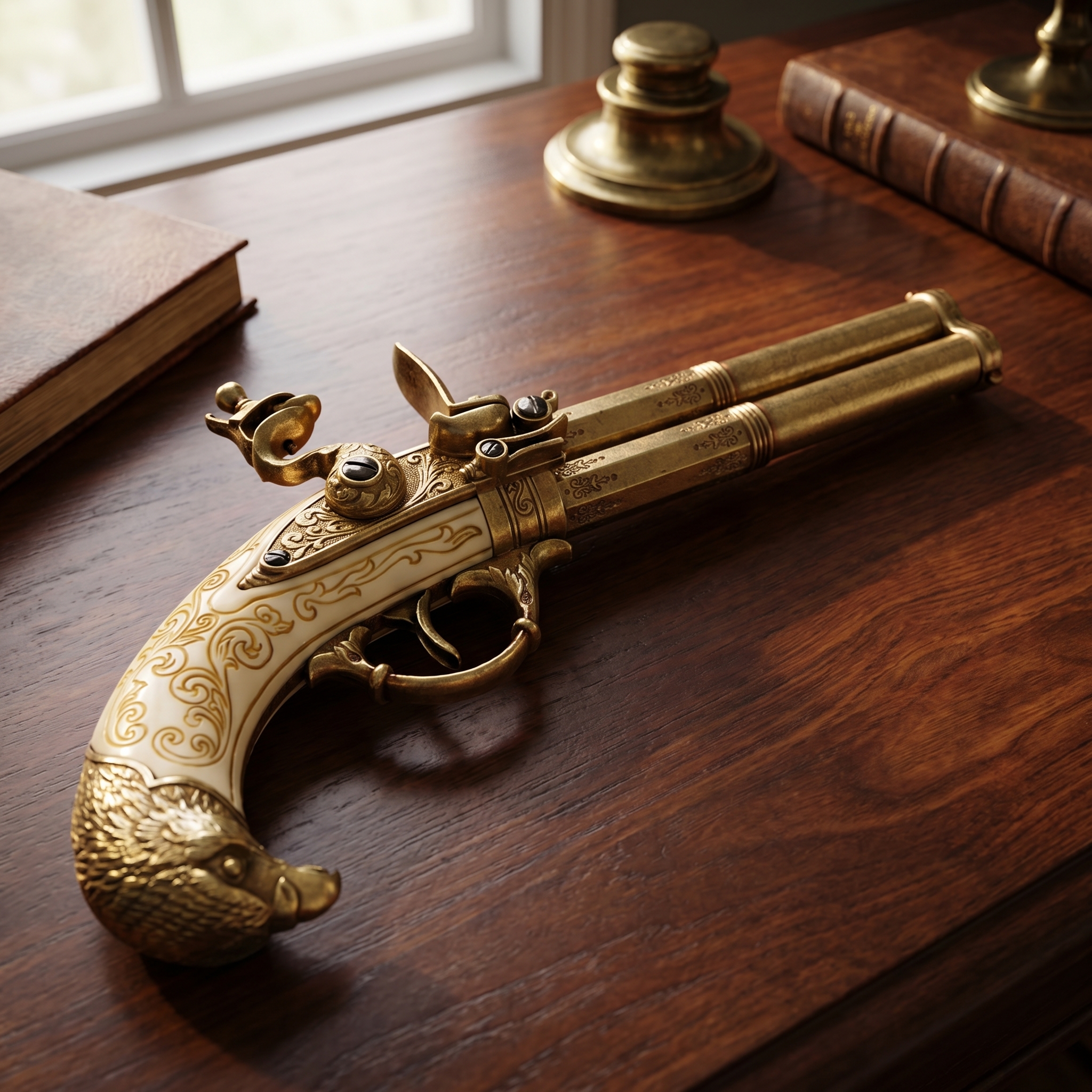 - provedení: dvouhlavňová křesadlová pistole