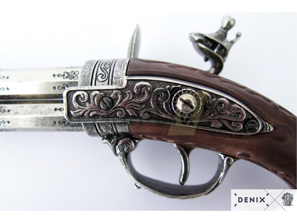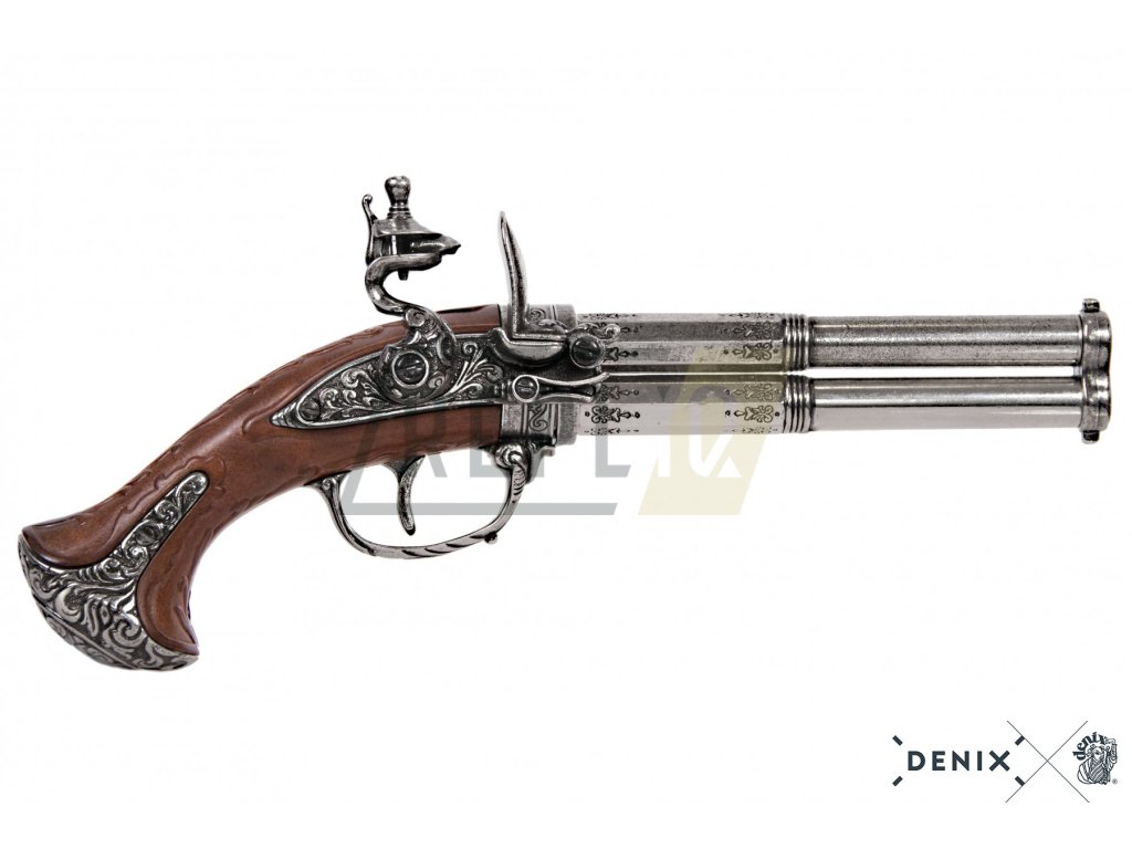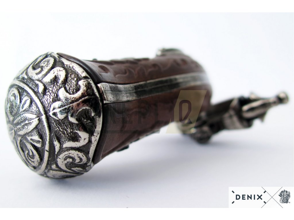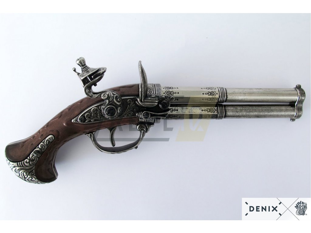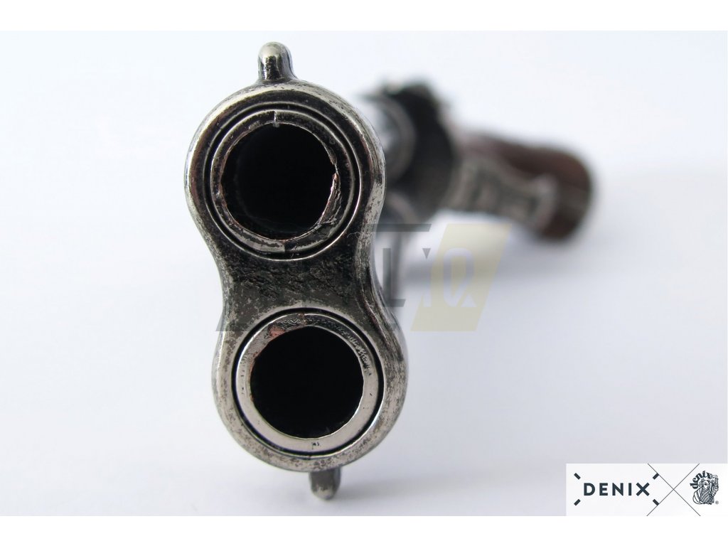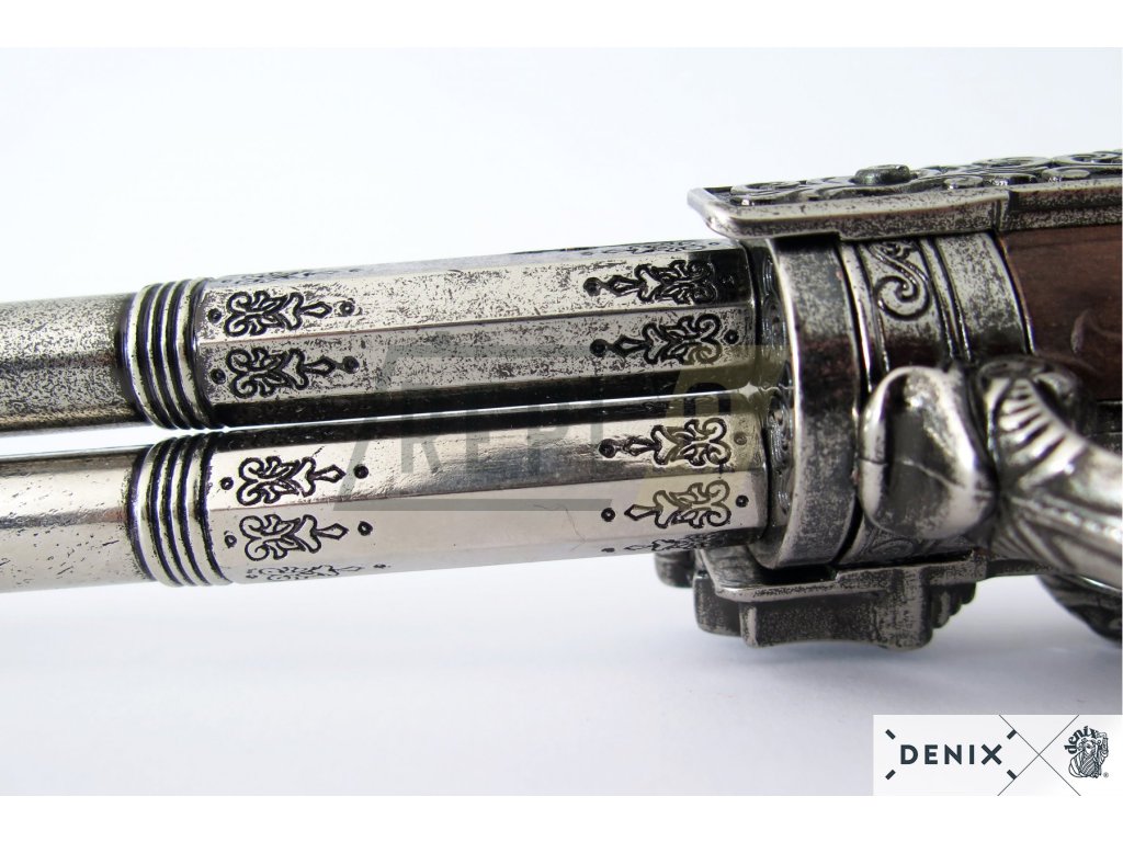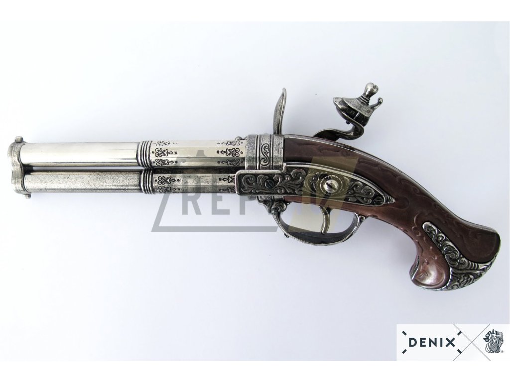 Dvouhlavňová křesadlová pistole - Francie 18.stol. + Přívěsek na klíče DENIX