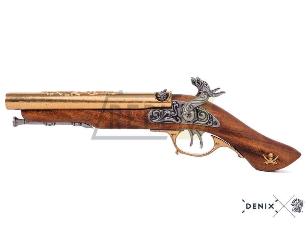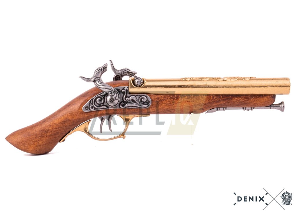 Dvouhlavňová křesadlová pistole - Japonsko 1800 (zlatá) + Doprava zdarma na další nákup