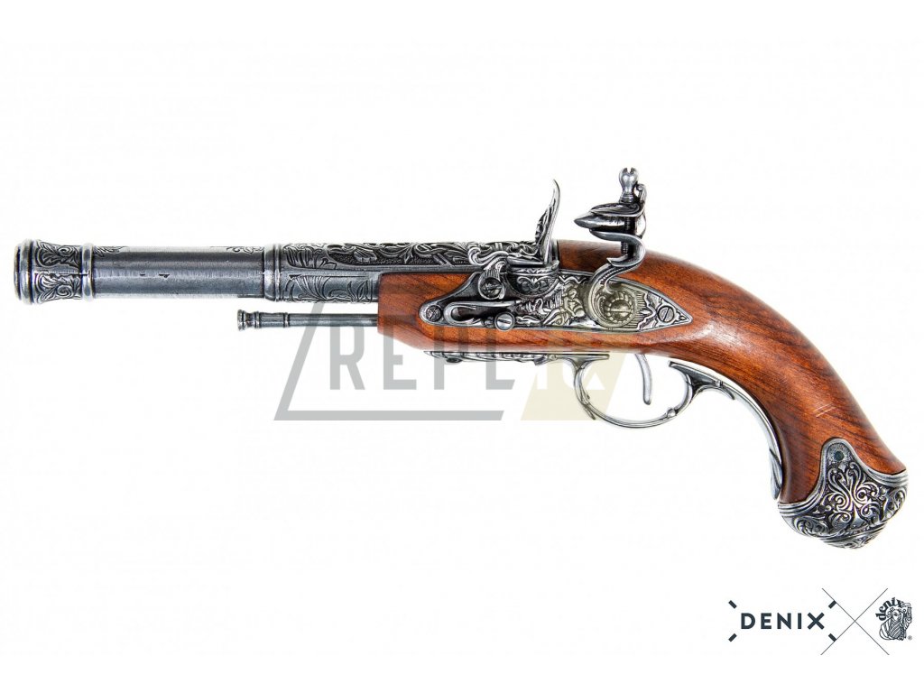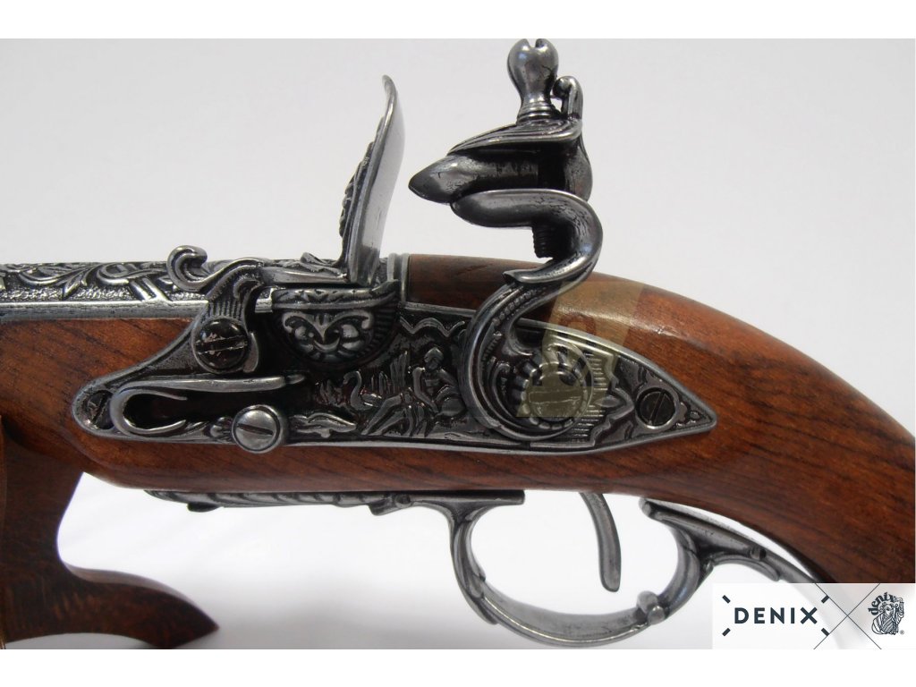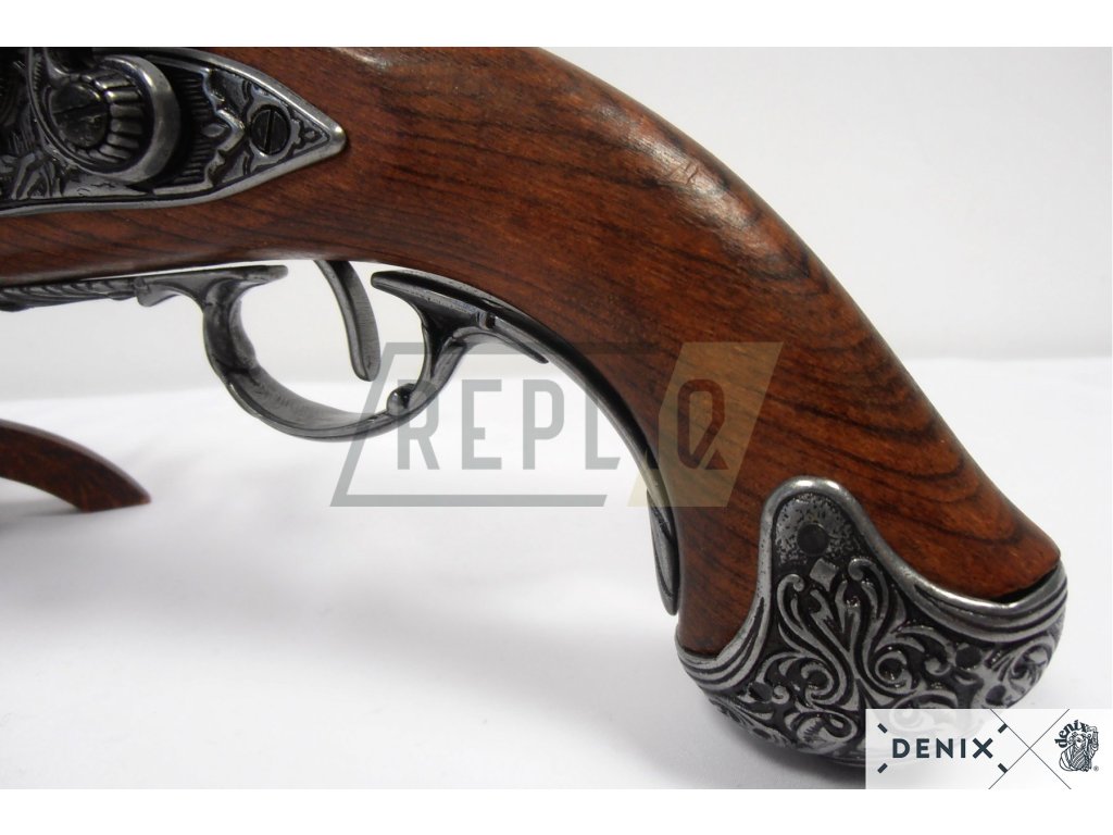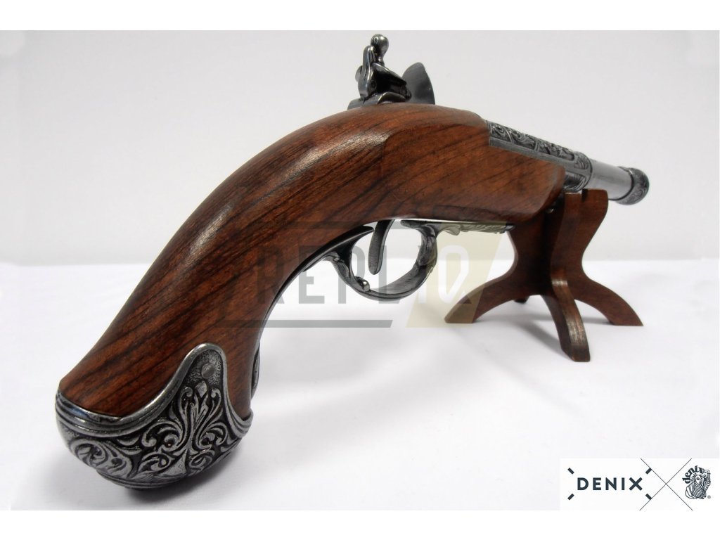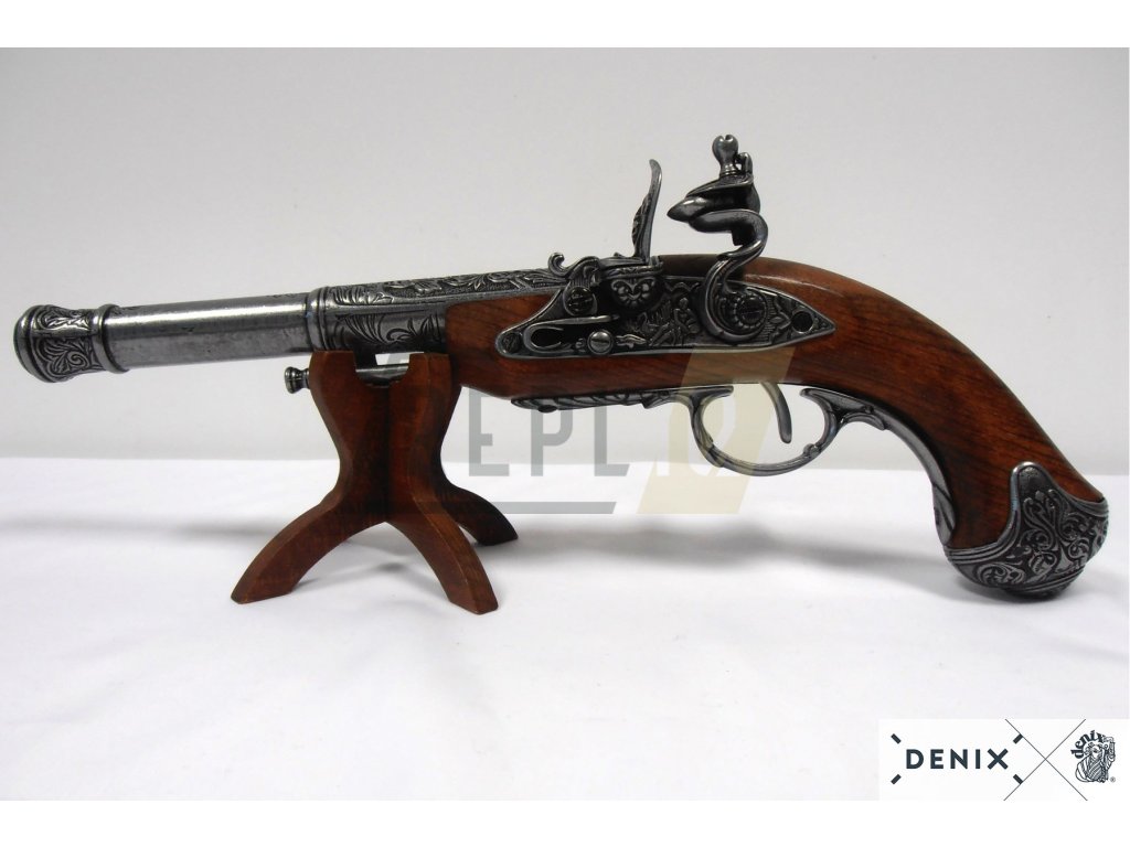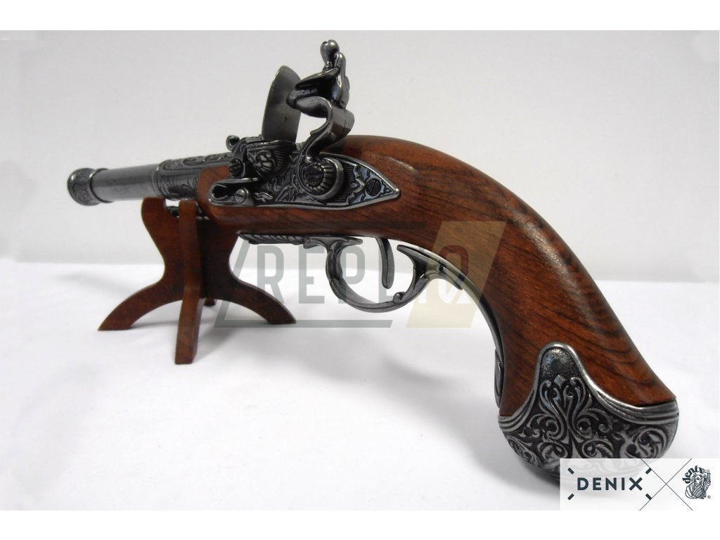 Replika pistole Indie z 18. století. Tato replika je určena pro leváky a vyrábí se v mosazném a šedém provedení. Stojánek není součástí.