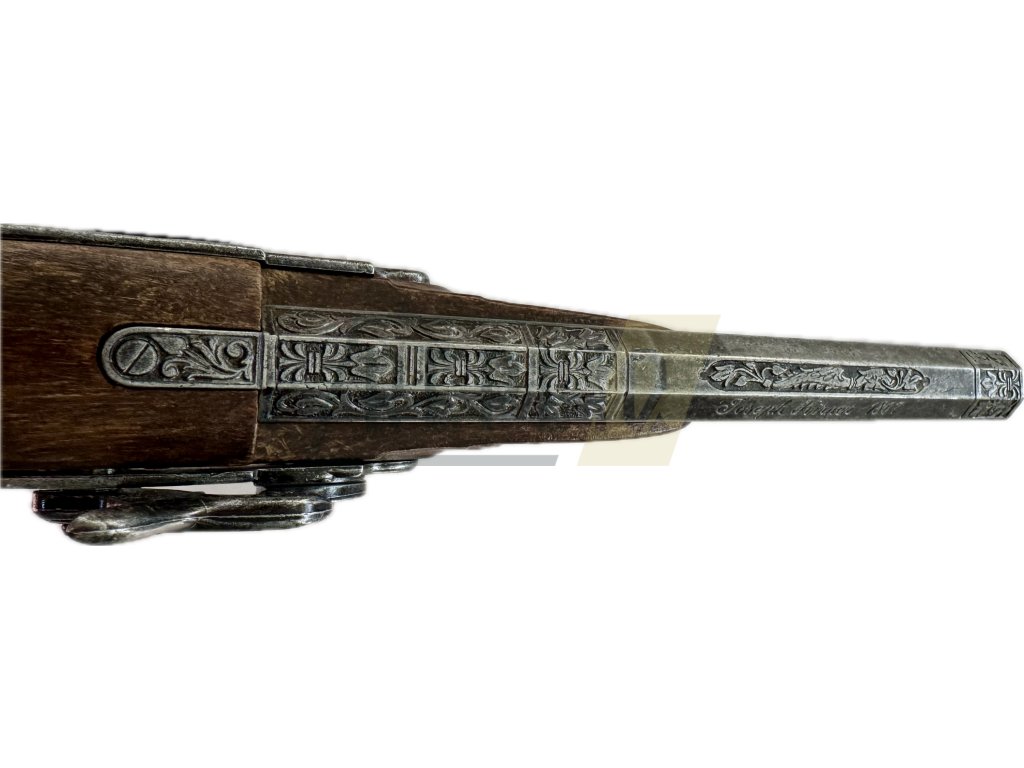 Tento typ pistole byl typický pro francouzské důstojníky a jezdectvo v 18. století. Vyznačoval se robustní konstrukcí, bohatým zdobením a jednoduchým nabíjením černým prachem. Replika zachovává tvar a proporce původních zbraní – ideální pro milovníky historických zbraní, divadelní rekvizity nebo tematické interiéry.