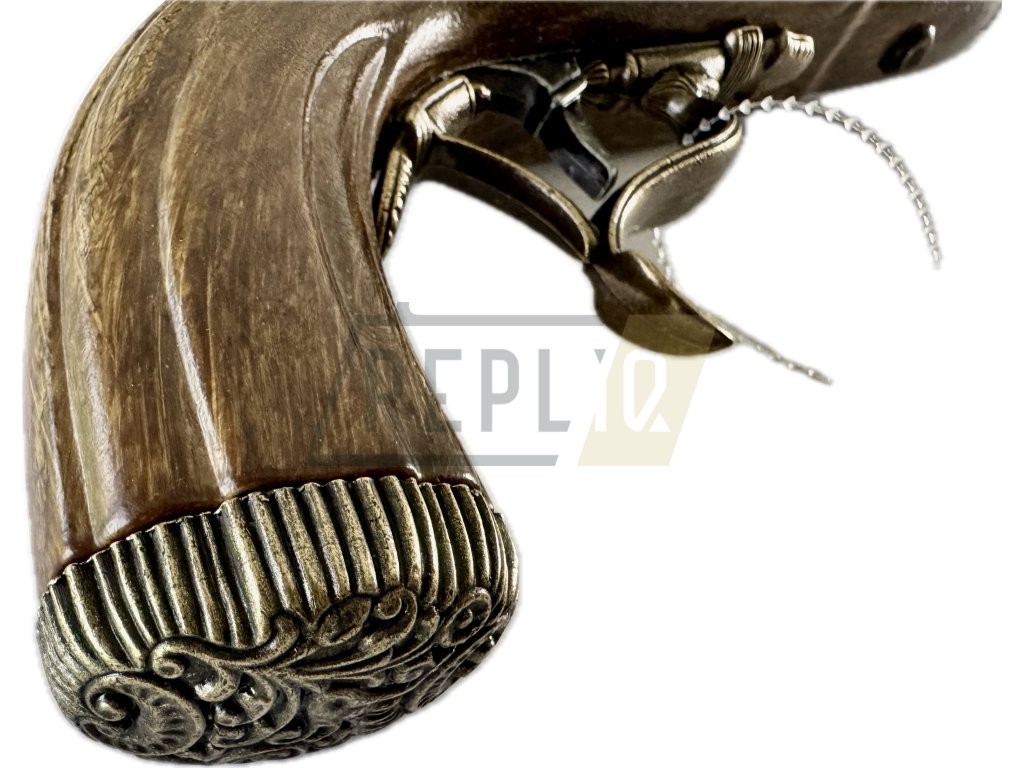 Tento typ pistole byl typický pro francouzské důstojníky a jezdectvo v 18. století. Vyznačoval se robustní konstrukcí, bohatým zdobením a jednoduchým nabíjením černým prachem. Replika zachovává tvar a proporce původních zbraní – ideální pro milovníky historických zbraní, divadelní rekvizity nebo tematické interiéry.