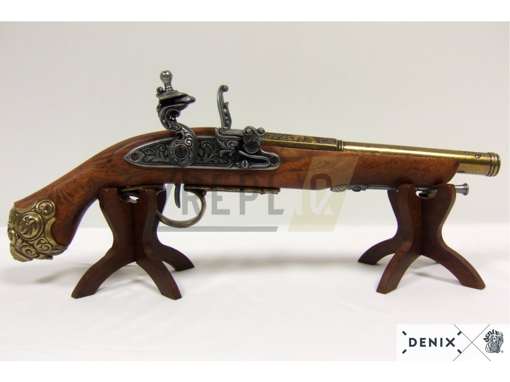 Křesadlová pistole z 18. století je vhodná jako dekorace. Je to střelby neschopná replika.