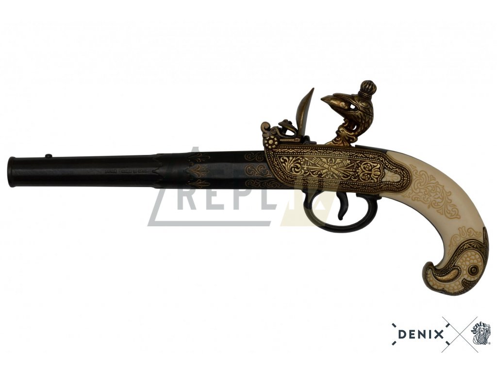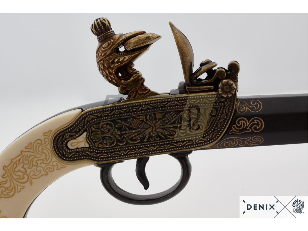 Pistole s křesadlovým zámkem je kopie originálu z 18. Století z Ruska. Je bohatě zdobená, a na rukojeti má imitaci slonoviny. Je to elegantní a designově velmi povedený výrobek. Z těchto důvodů je tato pistole velmi vyhledávanou položkou.