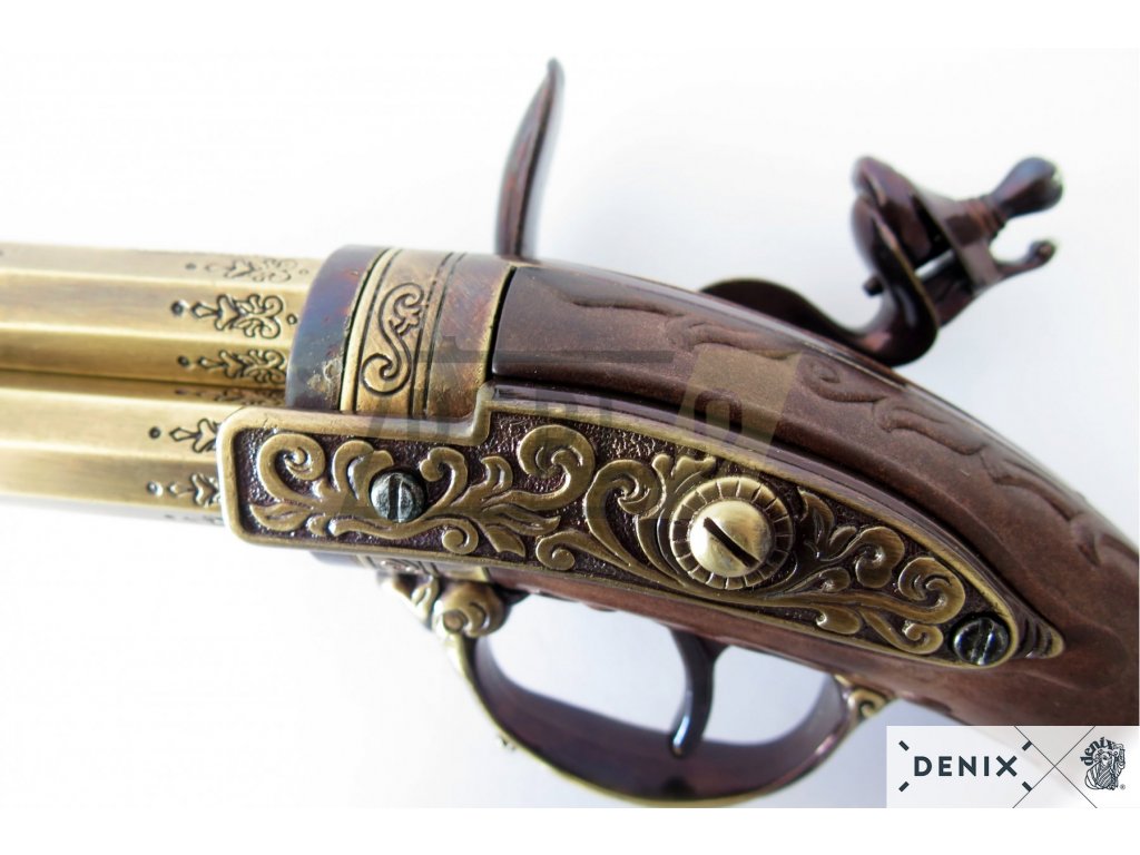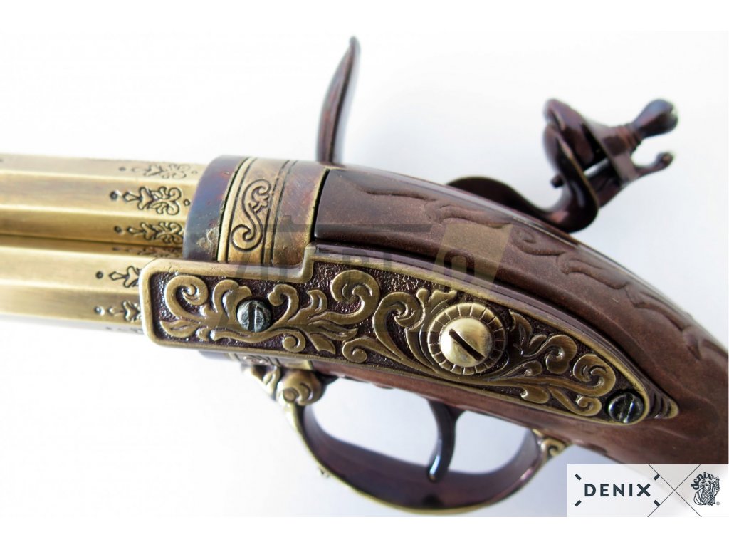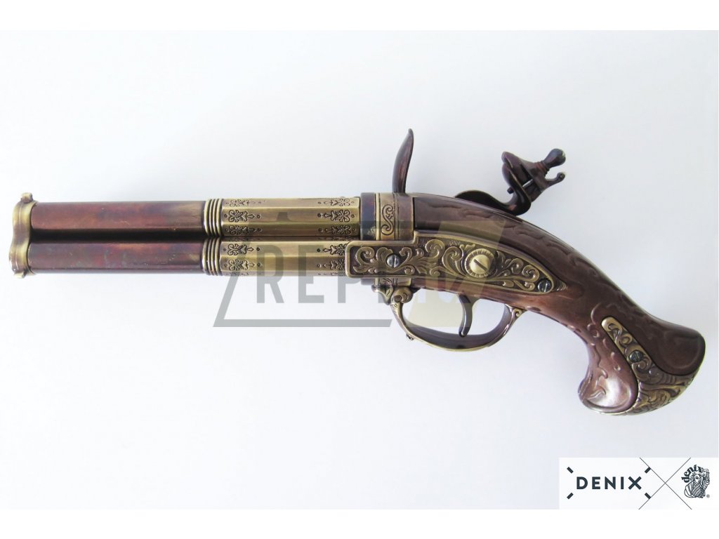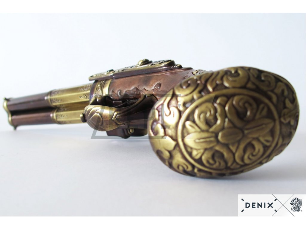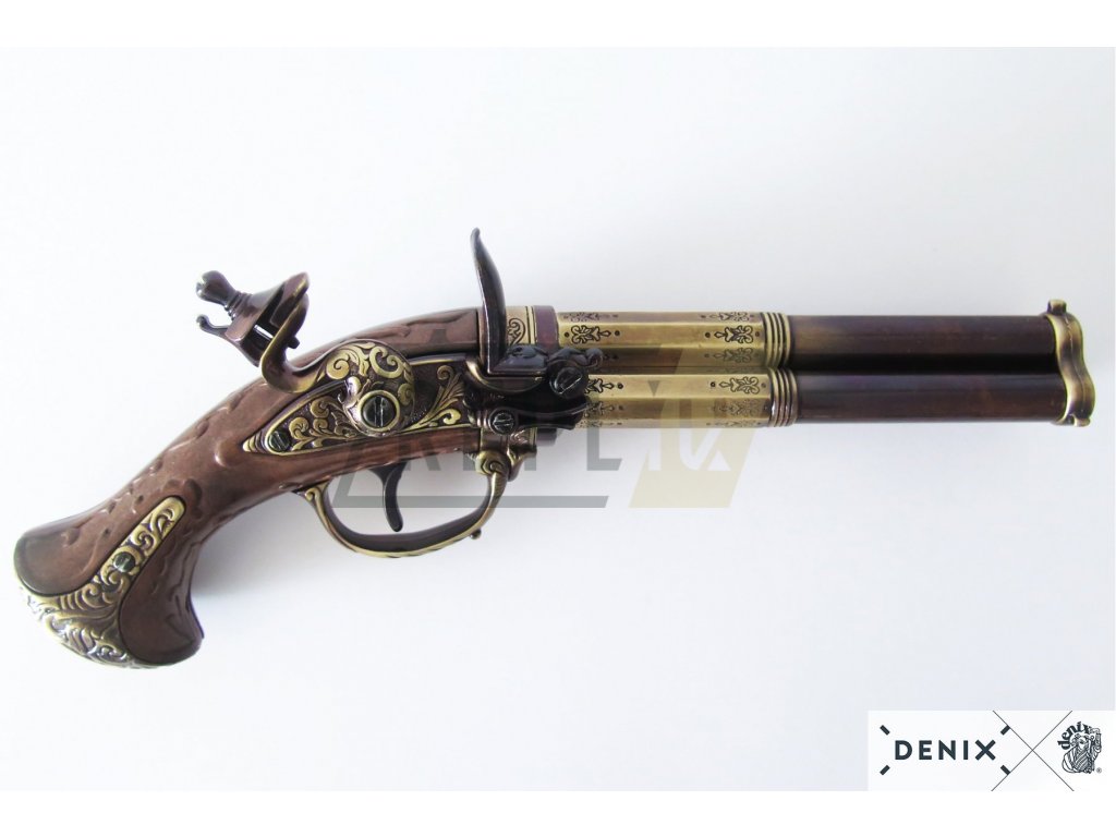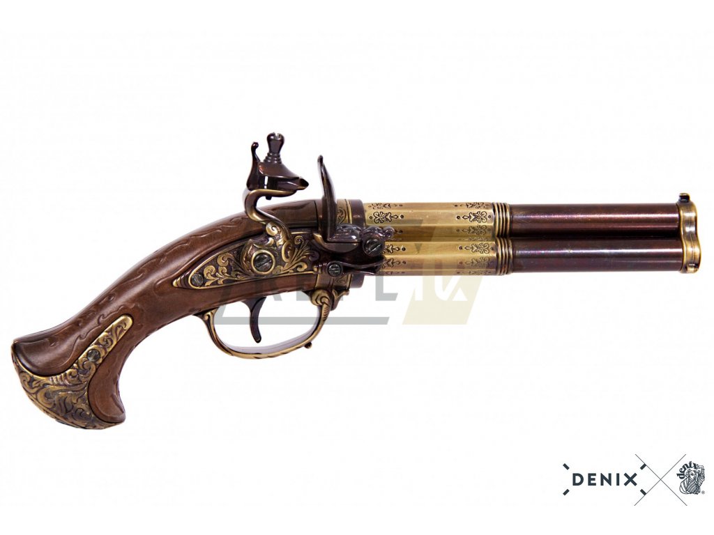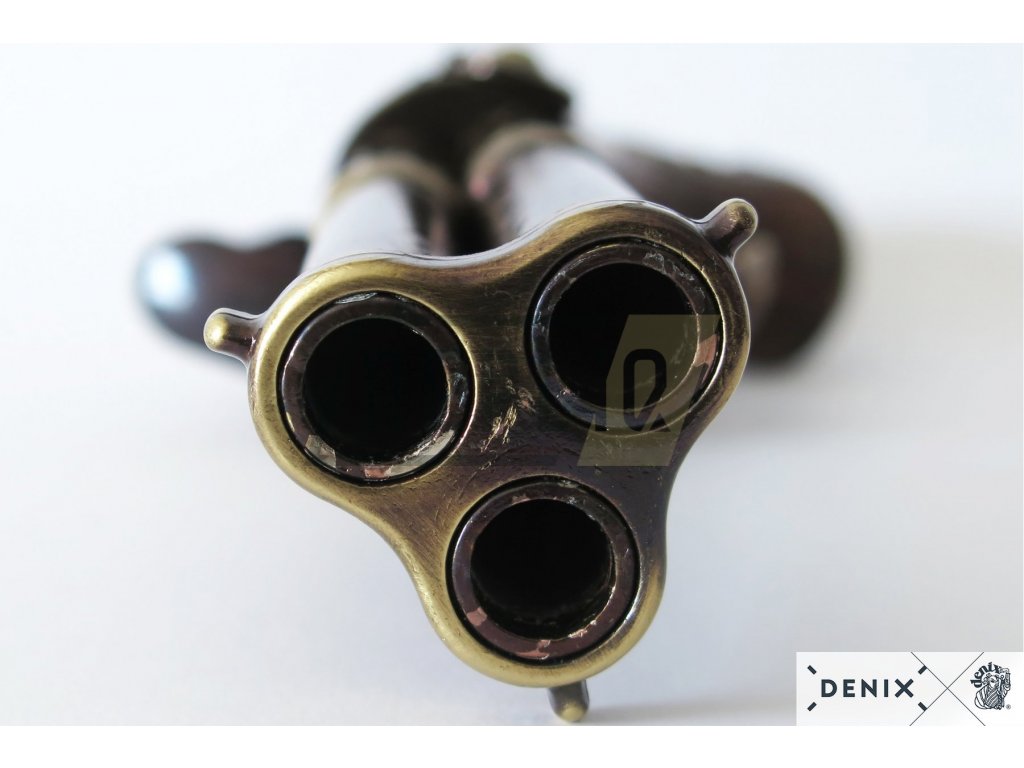 Tříhlavňová křesadlová pistole - Francie 18. stol. + Přívěsek na klíče DENIX