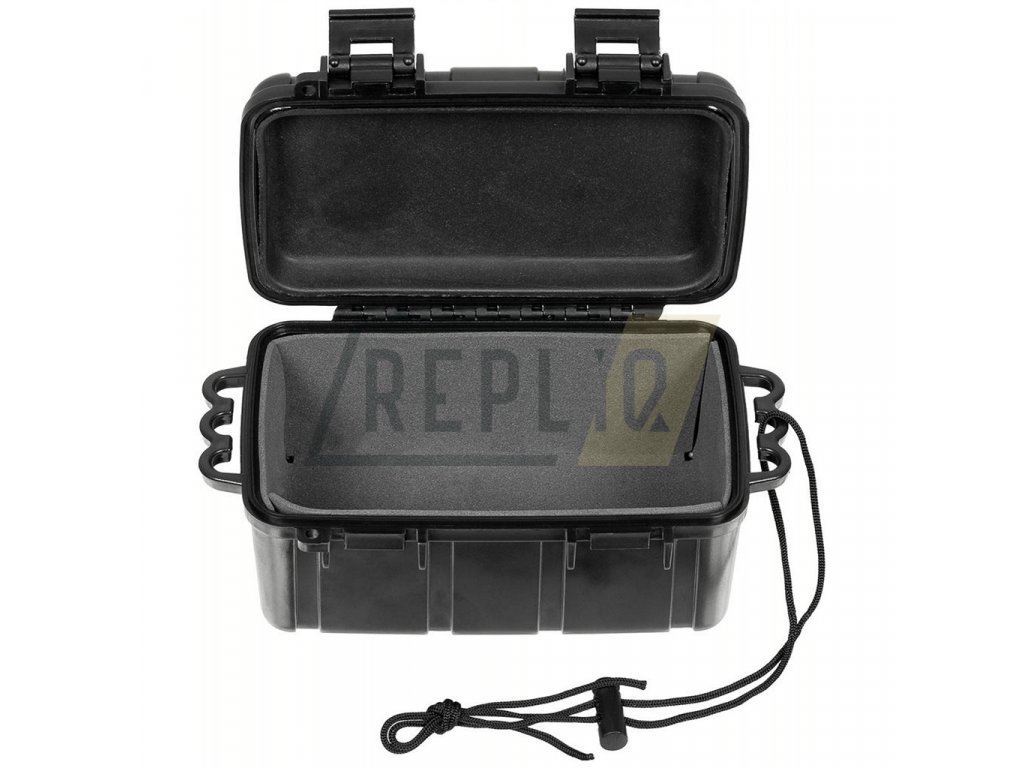 černá vodotěsná plastová krabička s provázkem, rozměry: 16,5 x 12 x 7,5 cm