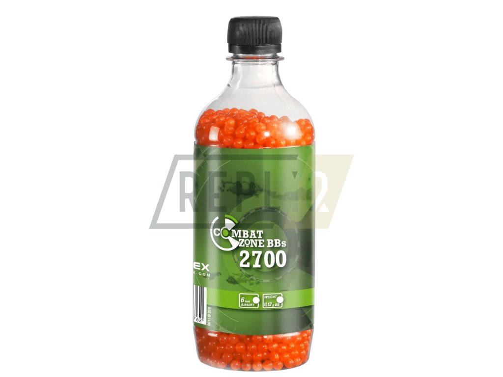 Platové střelivo BB o průměru 6 mm a hmotnosti 0,12 g značky Combat Zone pro airsoftové zbraně všech typů.Balení v PET po 2700 ks.