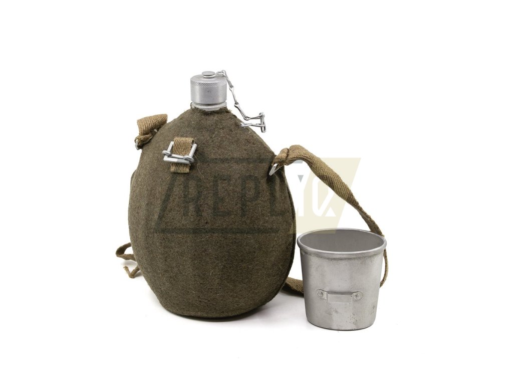 Láhev polní ITALSKÁ s pítkem a filcem hliníková