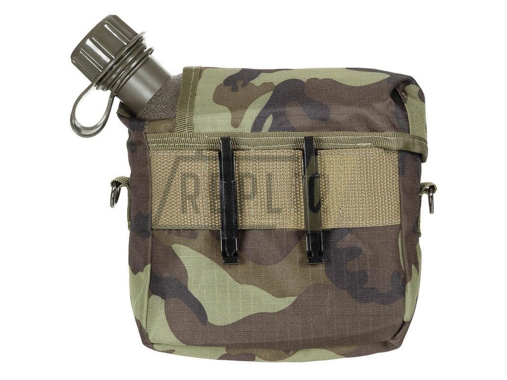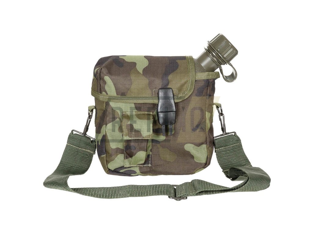 Plastová láhev na vodu o objemu 2 qt. (necelé 2 litry), včetně přepravního obalu, který lze pomocí nastavitelnému popruhu zavěsit přes rameno. Popruh lze díky 2 karabinkám odepnout. Pouzdro má na zadní straně 2 ALICE klipy, můžete ho tedy podle potřeby připnout na batoh, tašku případně taktickou vestu apod.