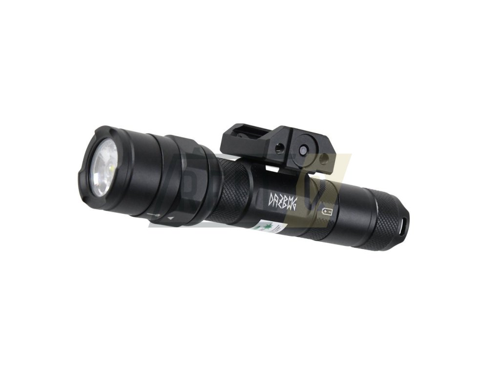 Svítilna DAŽBOG RT01 je vyrobena z CNC obráběného leteckého hliníku. V kombinaci s IP65 se jedná o odolnou svítilnu ideální nejen pro vaší airsoftovou zbraň. Světelný tok 650 lumenů a dosvit až 150 metrů zajistí více než dostatečné osvětlení jak vnitřních prostorů tak venkovních ploch. Ve svítilně nalezneme již integrovaný zelený laser o vlnové délce 532nm. O napájení se stará dobíjecí Li-ion baterie 18650 s kapacitou 2600mAh. Tuto baterii můžete nabíjet jak přes USB-C přímo ve svítilně, či po vyjmutí ze svítilny v externí nabíječce (není součástí balení).