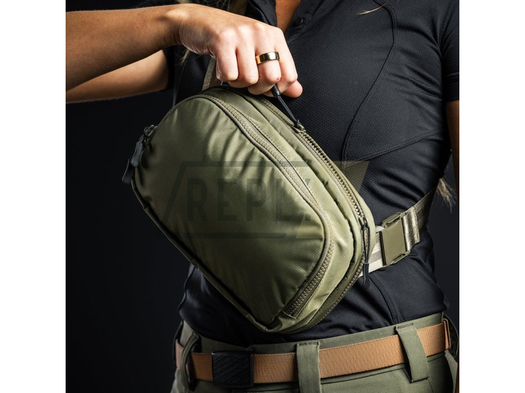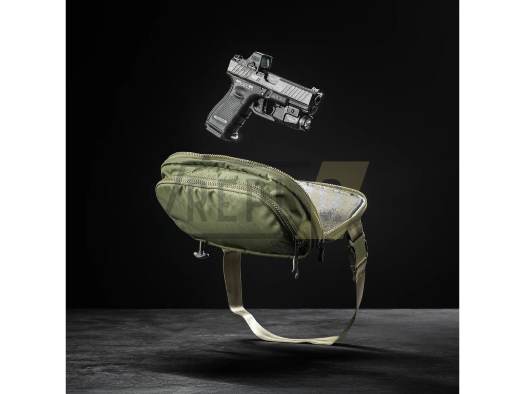 CCW ledvinka, kterou je možné po prodloužení nosného popruhu použít jako minimalistický batoh přes jedno rameno s možností skrytého nošení krátké palné zbraně včetně jejího kolimátoru. Ledvinka je vyrobená z 210D Regen Robic mini rip-stop materiálu, který se navzdory nižší gramáži vyznačuje vysokou mechanickou odolností.