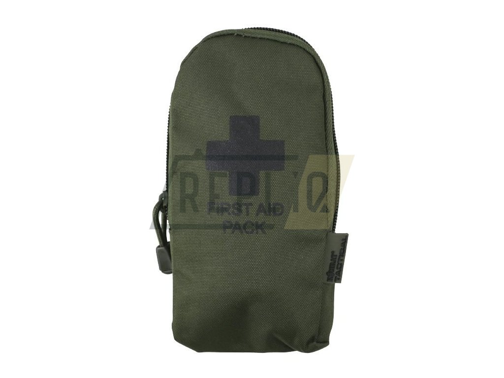 Malá kompaktní osobní lékárnička v maskovacím potisku BTP- velmi podobný britskému vzoru MTP. Lékárnička má vzadu dva elastické průvleky pro přichycení na batoh, případně jeden pevný pro připevnění na opasek apod.