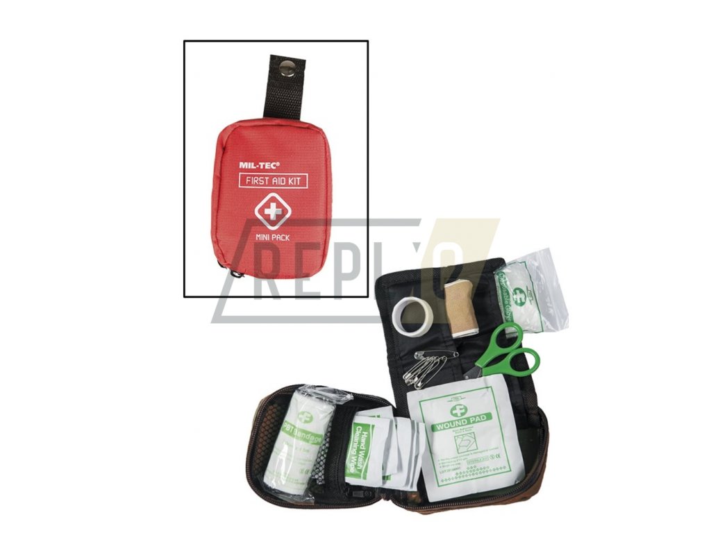 Malá vybavená lékárnička první pomoci. Kromě samotné výbavy obsahuje několik přihrádek.